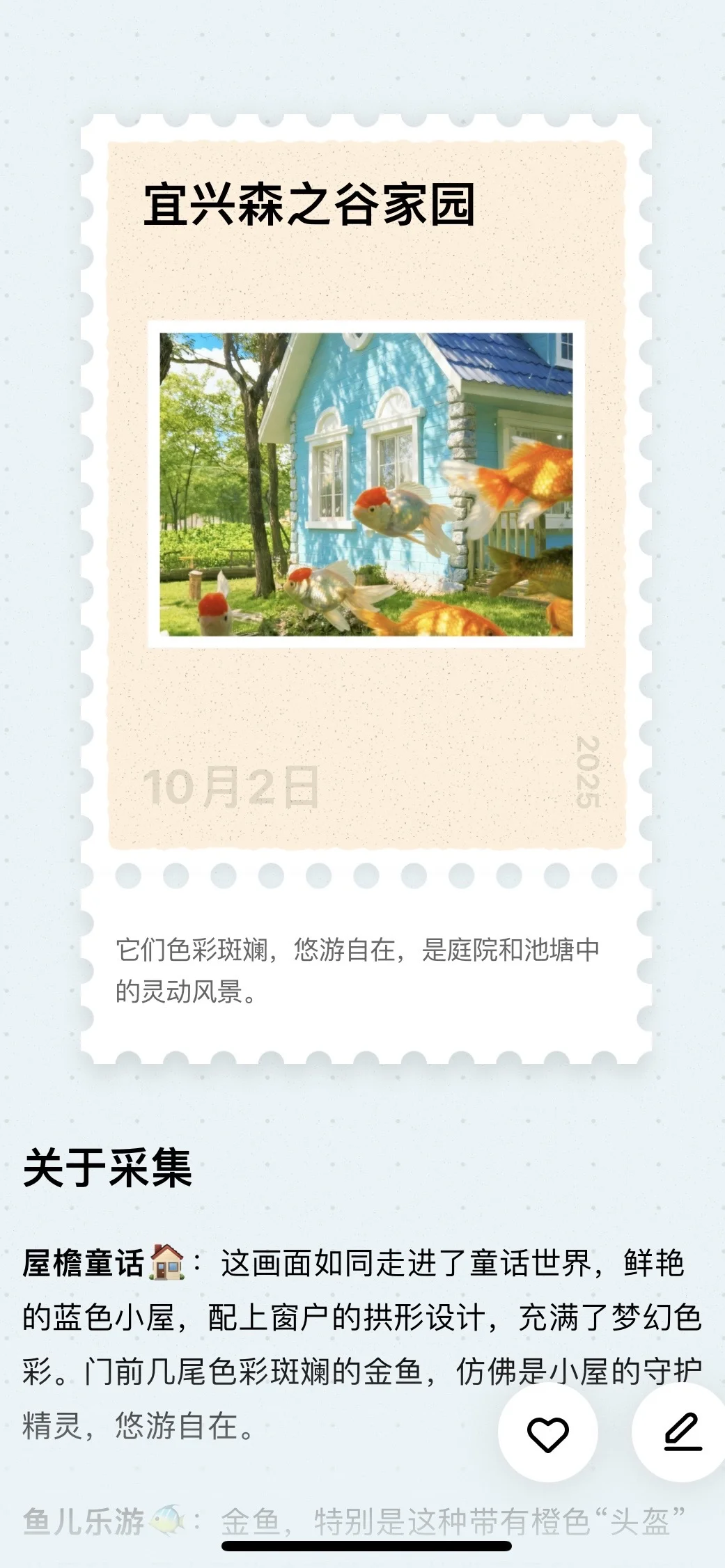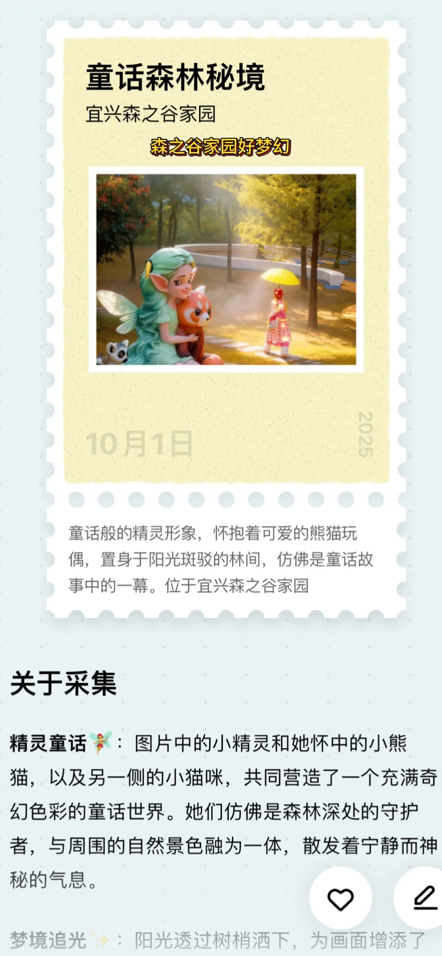 在宜兴我用圆周旅迹新出的采集各种旅途中的美景,还会解读名称呢,说不定还能收到镭射卡,看我收到的宜兴童话森林 小 卡 ,很有成就感!