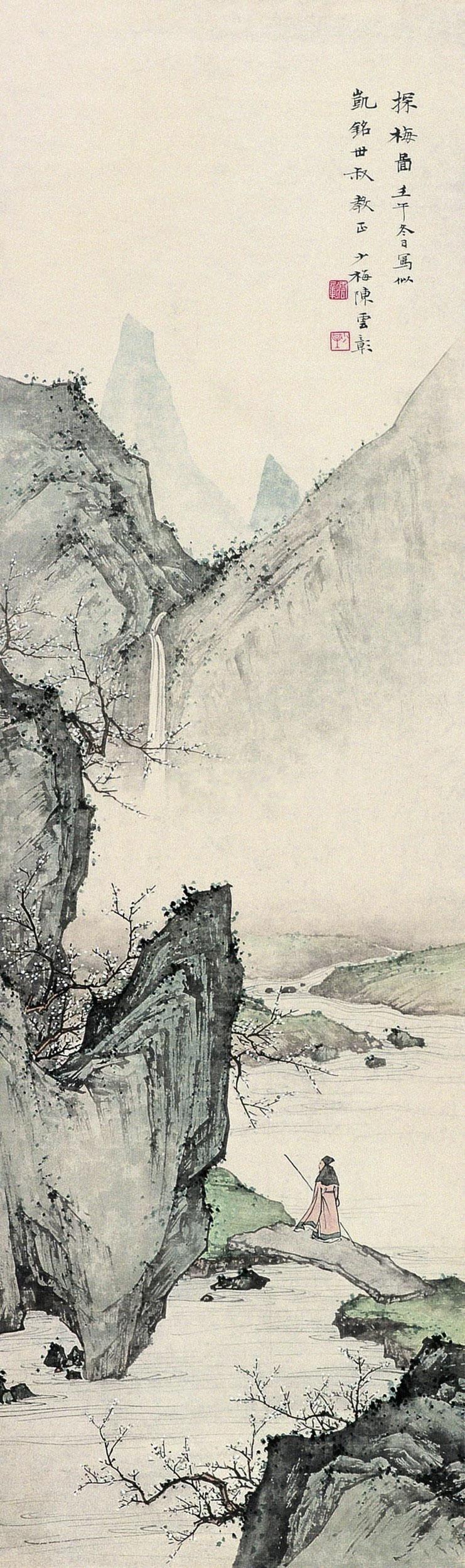 唐伯虎之后第一人。陈少梅(1909年4月-1954年9月),名云彰,又名云鹑,号升湖,字少梅,是中国近现代著名画家、美术教育家 。陈少梅与张大千、溥儒、金北楼被合称为“民国四大家”,有“当代唐伯虎”“马夏再世”等美誉。2009年,他与齐白石、徐悲鸿等八位著名画家,被文化部列入首批《20世纪美术作品档案》。2023年,国家文物局规定其作品一律不准出境。