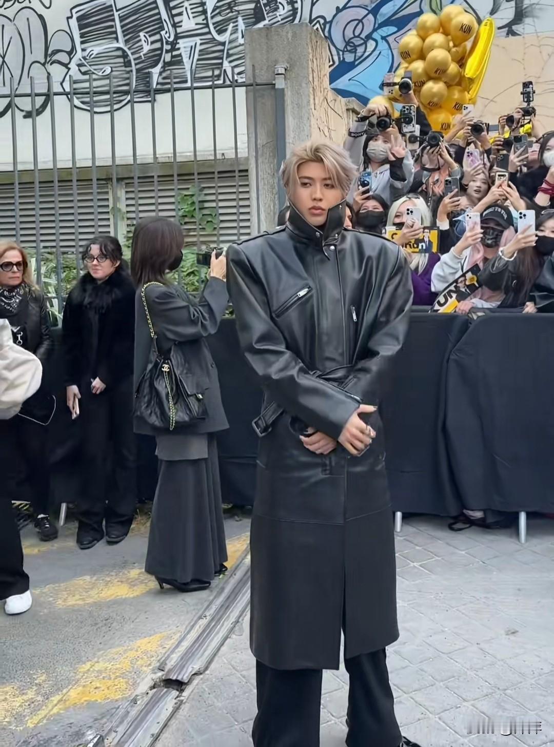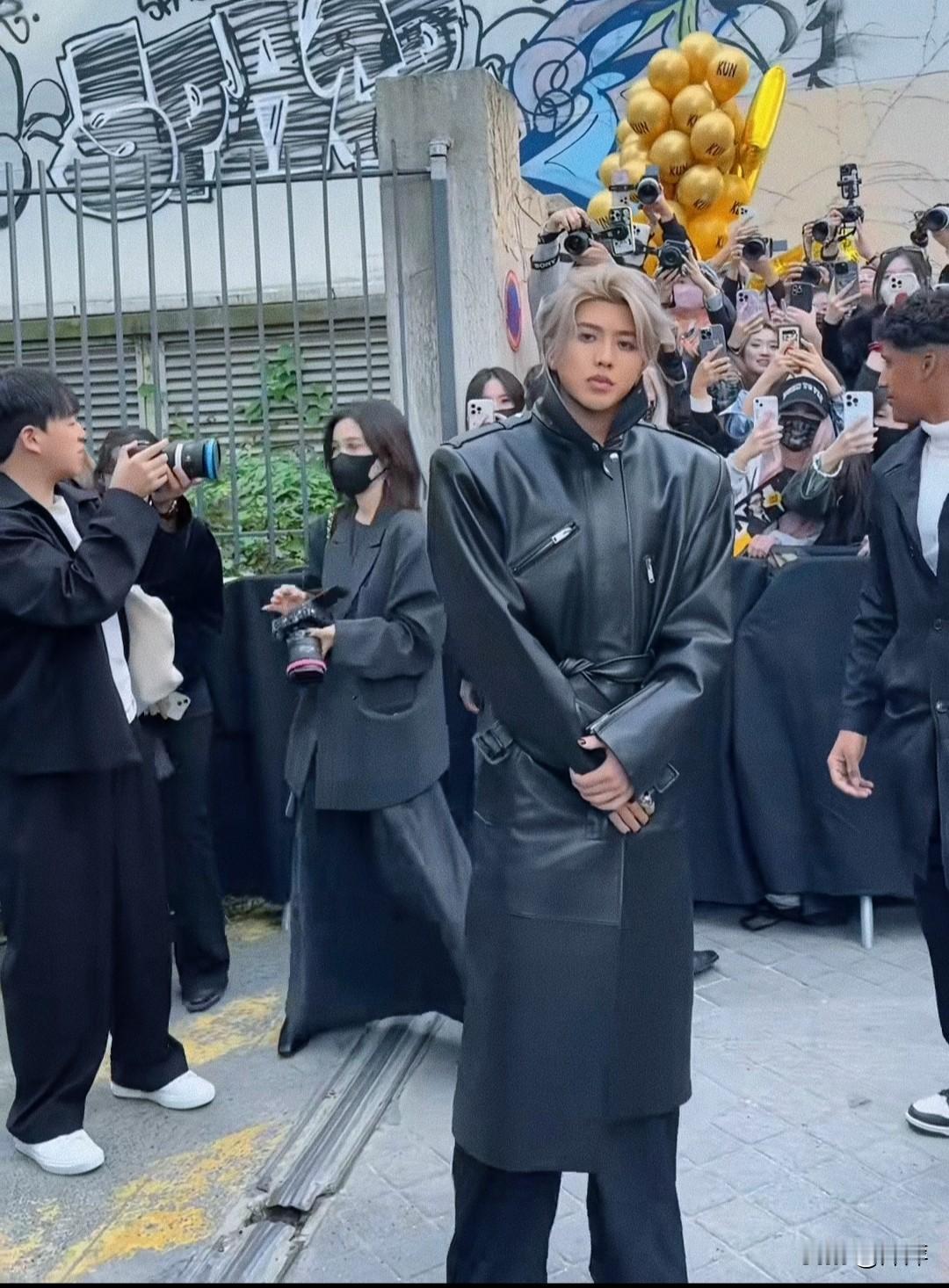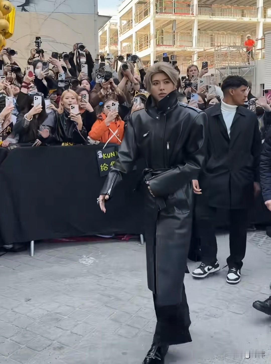 蔡徐坤.穿皮衣一头广发出席巴黎时装秀,引起粉丝尖叫好帅。