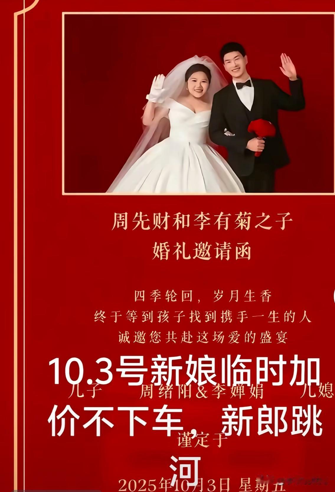看到陕西旬阳新郎婚礼当天跳河这条新闻,心里真堵得慌。大喜的日子变成这样,谁听了不揪心? 这新郎得是扛了多大的压力,才会在婚礼当天走这条路?现在结个婚真不容易,彩礼、酒席、买房,哪样不是大山。 据说是新娘在下车前强行索要2万下车费,导致新郎情绪失控,才发生此事,新娘真的是太过分了,婚前女方各种刁难,不想诚心结婚可以不结,这下好了去,以后谁还敢娶她。 最可怜的新郎的家人们,白发人送黑发人,红事秒变白事,往后这日子可怎么过?要我说,咱们真该醒醒了! 希望这事能给所有人提个醒:人活着,比什么都强。