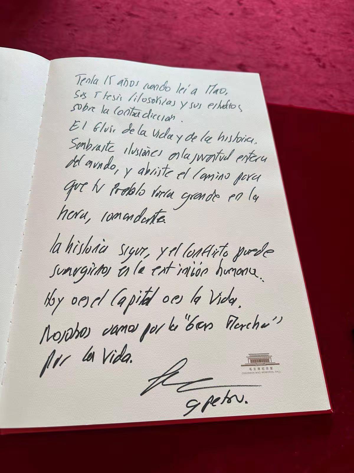 在联合国大会上硬钢美国的哥伦比亚总统佩特罗在访问中国毛泽东纪念堂留言,我15岁时读到了毛泽东、您的5篇哲学论文和您的矛盾研究。您在全世界的年轻人中播下了幻想,并为您的人民在地球上变得伟大开辟了道路,伟大的指挥官。历史仍在继续,冲突可能使我们陷入人类灭绝的境地,今天它要么是资本,要么是生命。我们正在为生命进行‘伟大的进军’! 网友评论: 毛泽东思想已在全世界得到了越来越多有识之士的认知,将来必定会广泛影响全人类! 毛泽东思想永放光芒!毛主席永远活在世界革命人民心中! 连外国总统都对伟人敬佩!我们作为国人,有什么理由不爱我们的开国领袖毛主席呢!