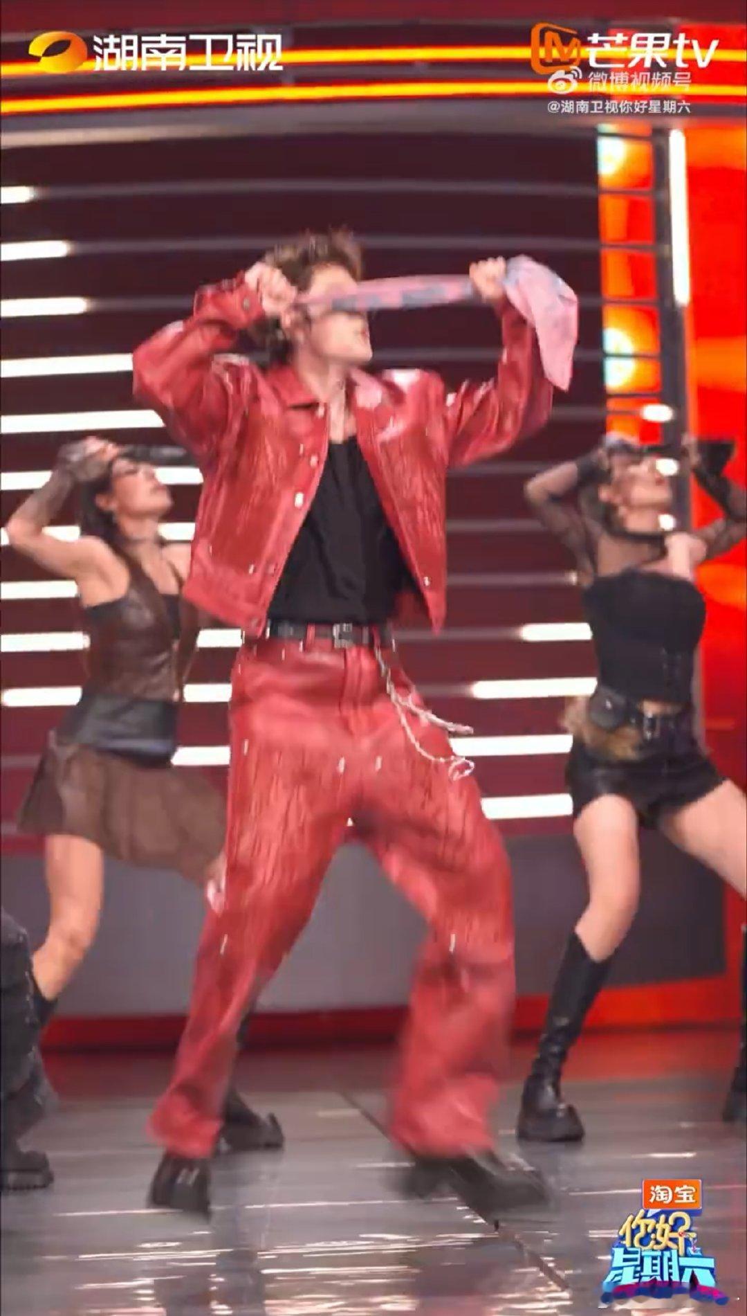 王栎鑫Dangerous舞台张力你好星期六 王栎鑫霸气携《Dangerous》空降穗克斯广场!红皮衣加身,利落线条尽显,金属拉链舞动生光。鼓点起时,红丝巾与衣角共舞,视听盛宴震撼开场,快来感受!王烁鑫[超话]