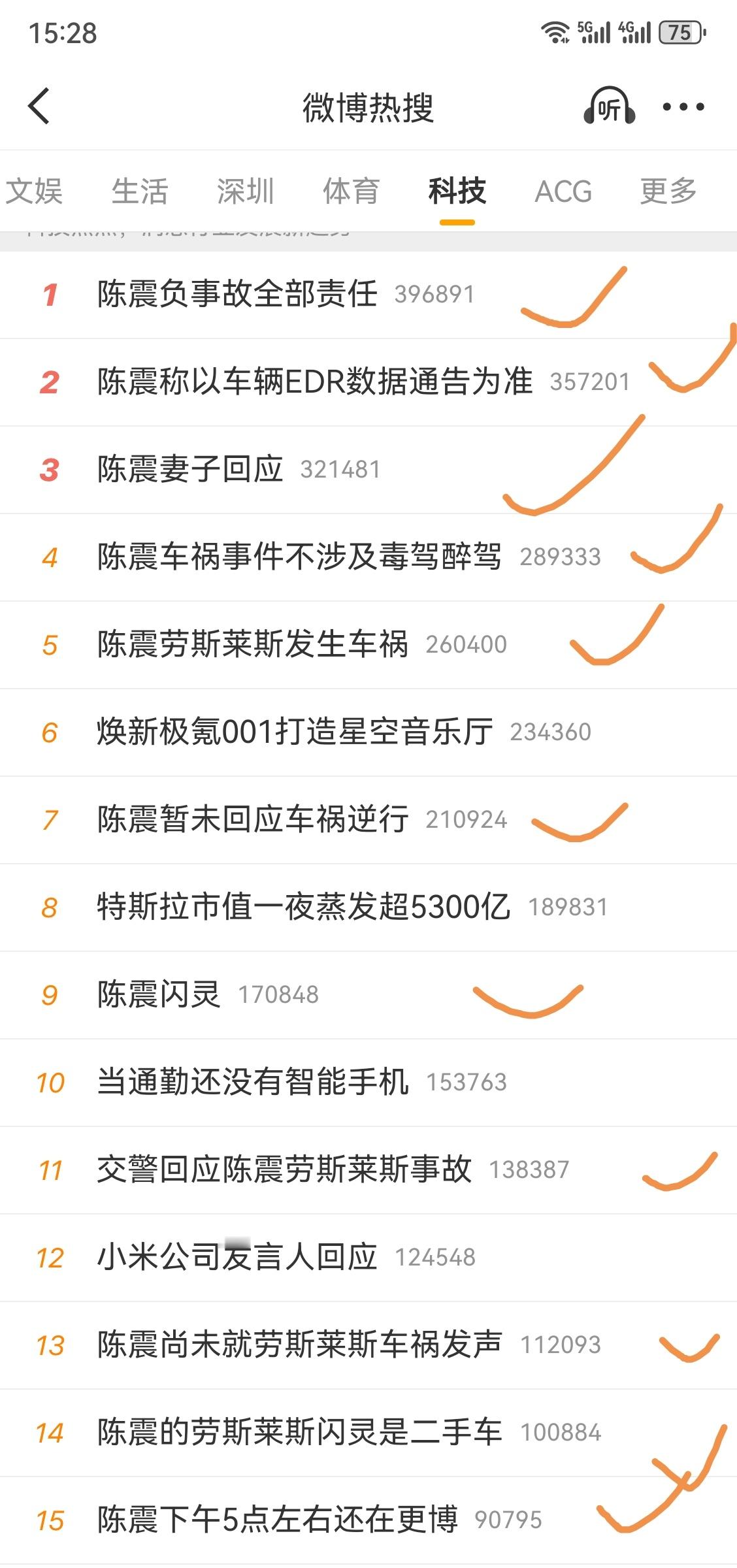 陈震,果然是热搜体质,科技榜都是,顶流实锤。陈震称以车辆EDR数据通告为准陈震负