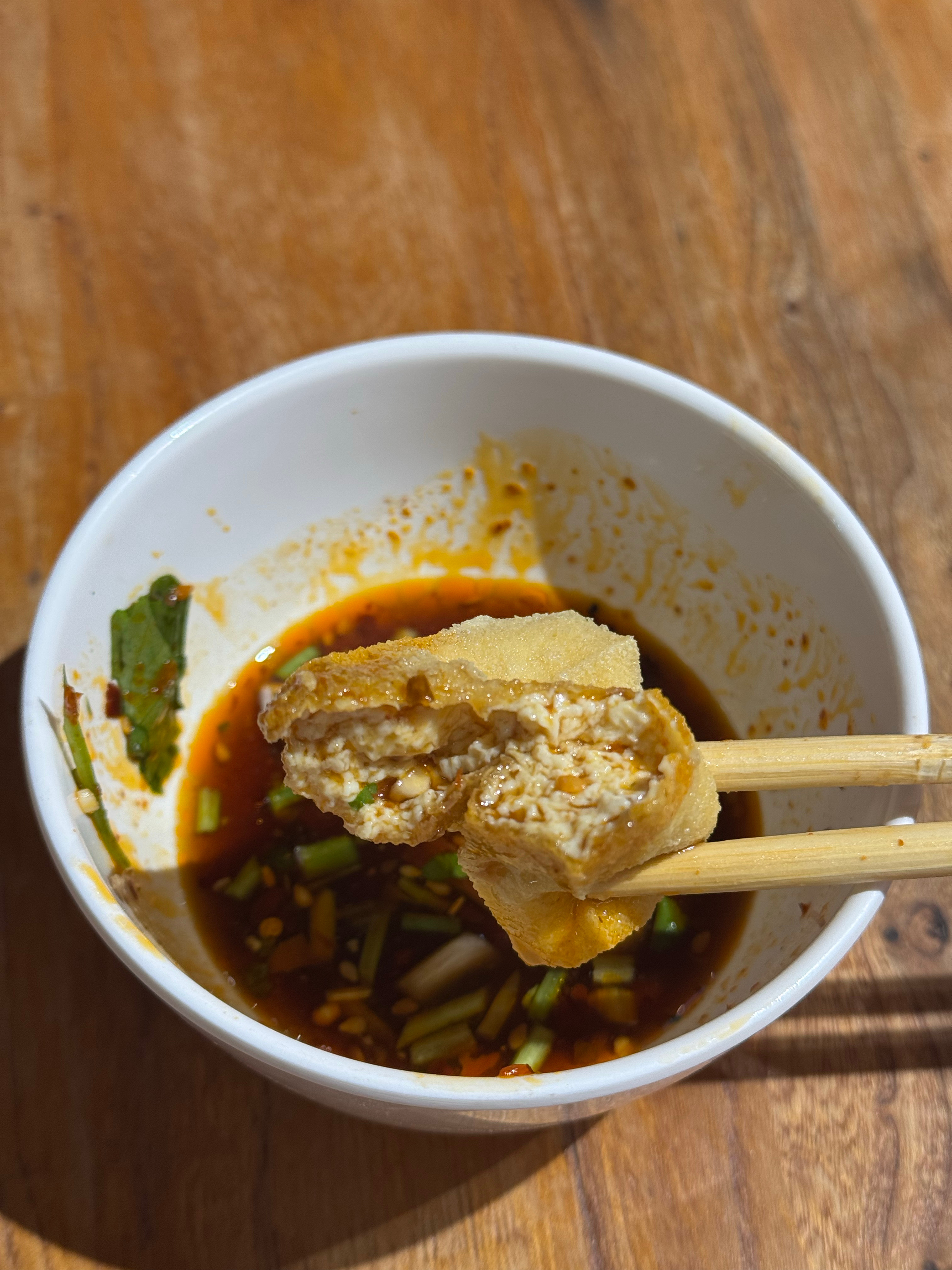真的很外酥里嫩,配上这个酸辣的汁太绝了,跟四川的包浆豆腐很不一样