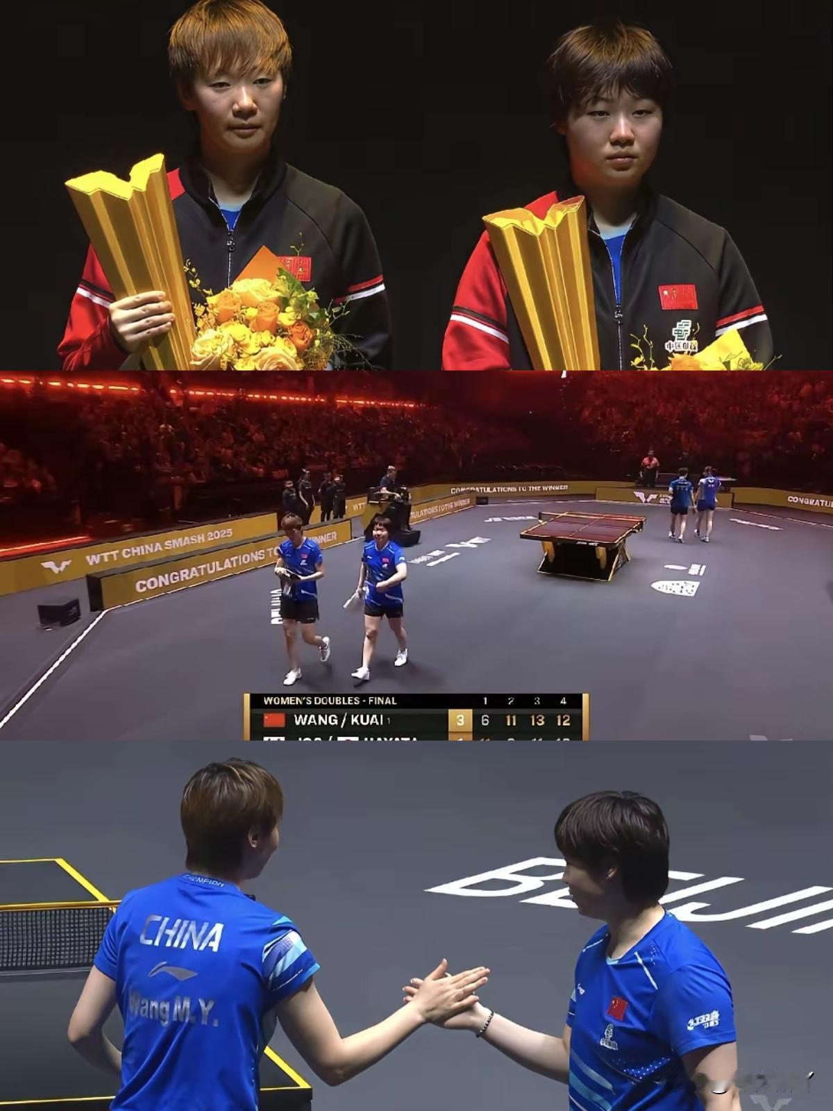 王曼昱又让人破防了 不是她单打零封了对手, 也不是她球商有多惊艳,而是 她在双打绝境里硬扛全场还安慰队友! 谁看王曼昱蒯曼这场双打没跟着捏汗啊!开局直接掉“绝境局”——蒯曼状态突然掉线,第一局就被对手打了个1-8的悬殊差距,这种开局落后的场面,在双打赛场真的少见! 对手朱芊曦更是一点不浪费机会,第三局暂停时直接喊明“蒯曼状态不好,就盯紧她打”,之后每一轮球都往蒯曼这边压,场面看得人心脏跟着紧。 关键时刻还得是王曼昱!场上她拼得太狠了:好几次眼看对手要抓蒯曼正手空档,她直接跨步飞扑,用正手快带直线把球钉在对手台角,硬生生断了对手的进攻节奏;还有次对手打她反手大角度,她愣是靠手腕爆发力贴防变线,反而打了对手一个措手不及。 就是这样一拍拍硬扛,才没让比分彻底崩掉;赛后她还第一时间拉着蒯曼安慰,一句“双打是两个人的事,一个人撑不住,另一个就得顶上”,既有老将的硬气,又藏着队友间的软心。 这场赢的不只是比分,更是王曼昱扛压的狠劲和细腻的球商!你看这场时,是被她跨步救球的拼劲打动,还是被反手变线的巧劲惊艳?评论区说说~王曼昱蒯曼