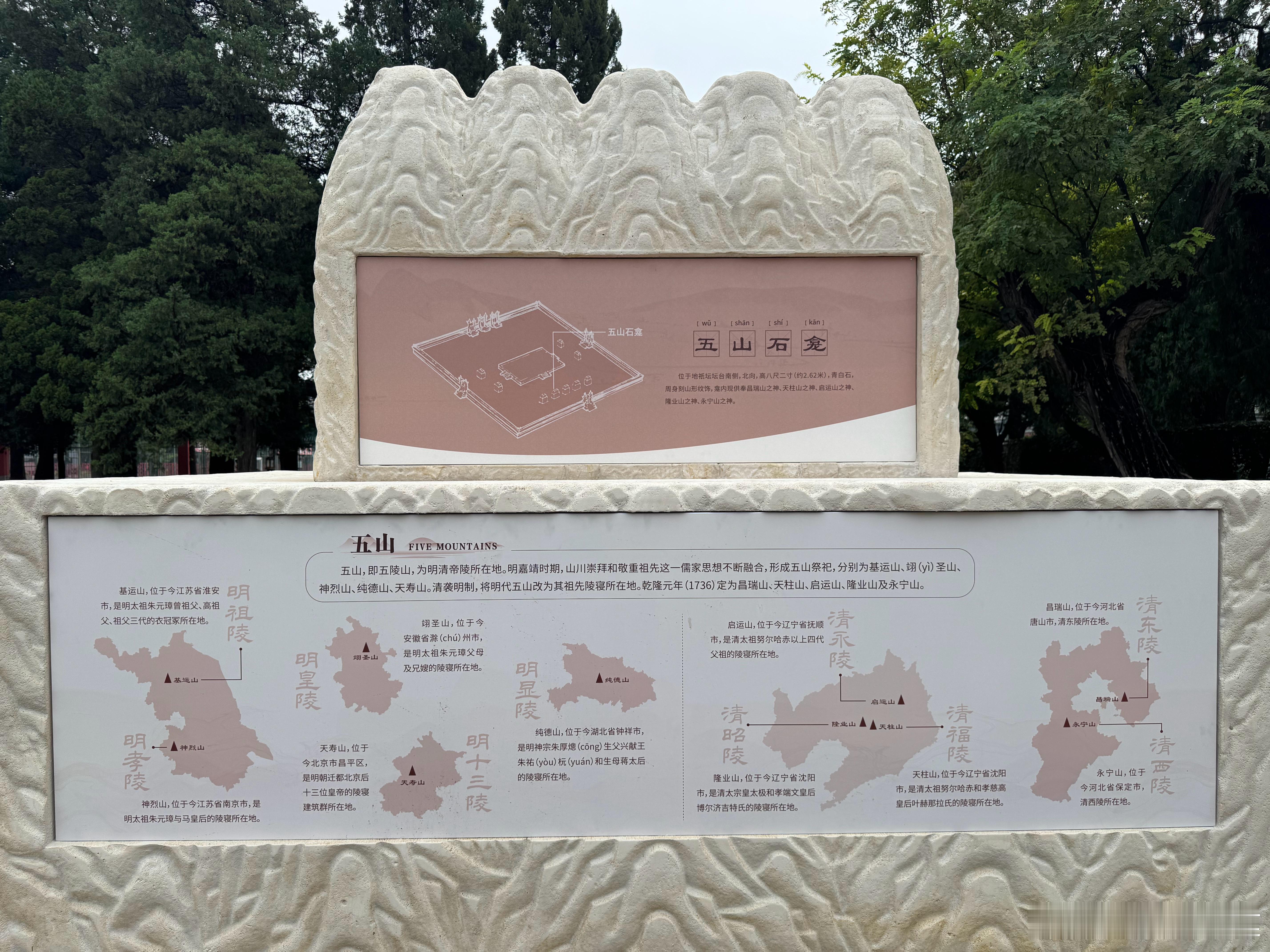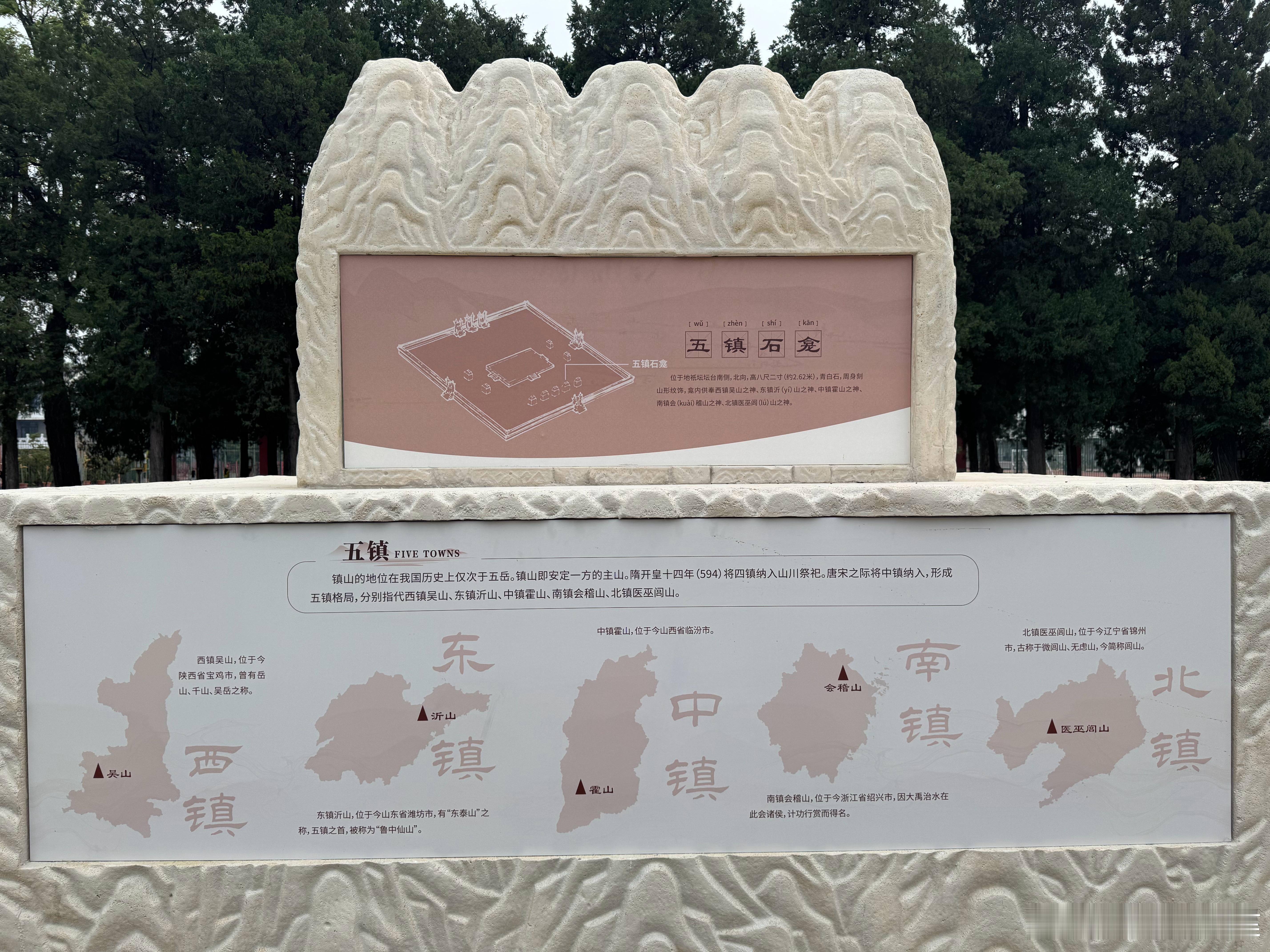 先农坛地衹坛石龛现在做了图示的说明,很好,这样普通游客对相对陌生的四渎,五镇,五陵山文化也有了具体了解。