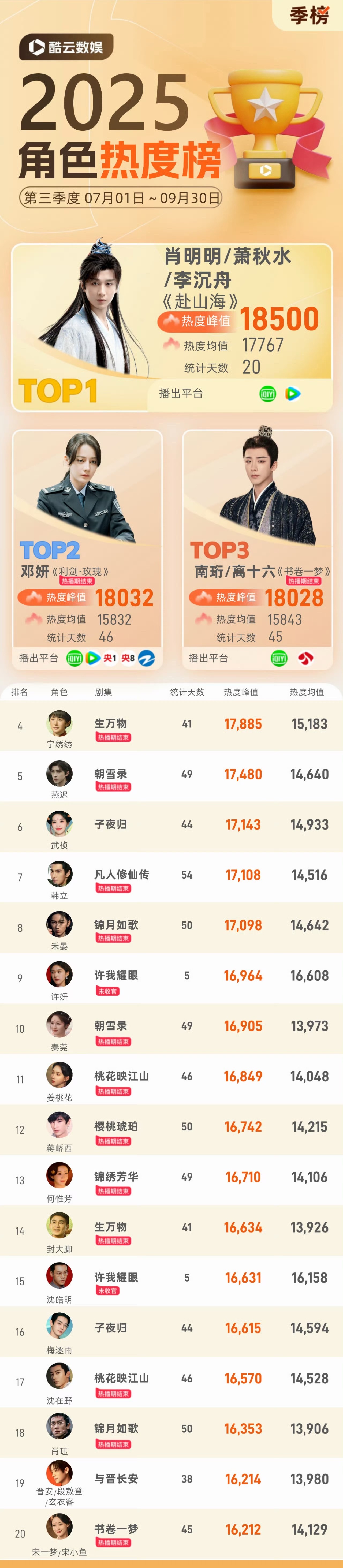 酷云认证2025年Q3角色热度冠军成毅🔥人抬剧顶级号召力!