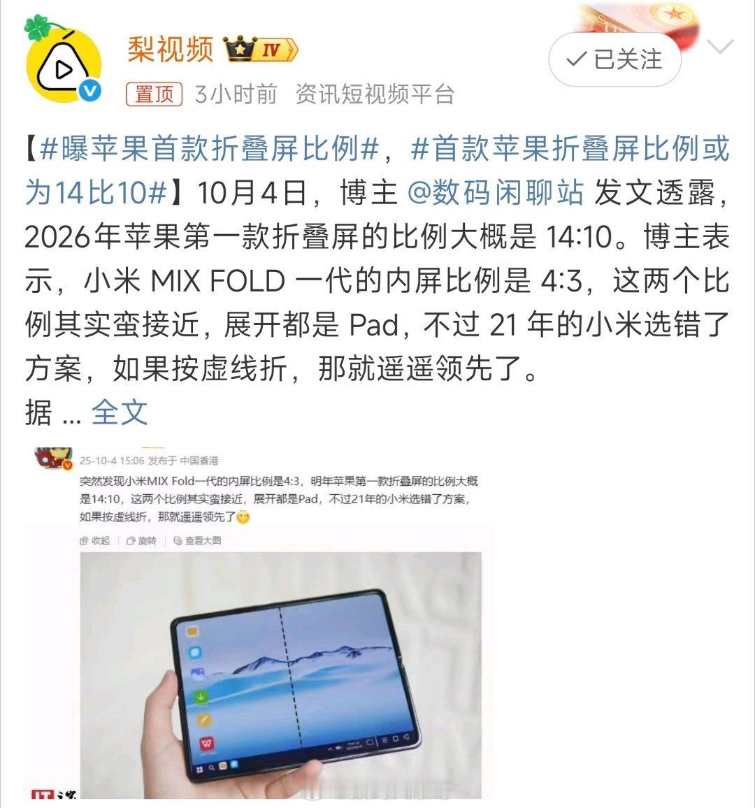 曝苹果首款折叠屏比例苹果折叠屏敲定14:10比例,既贴合iOS生态又主打二合一,可等到2026年发布,安卓阵营已卷透轻薄+长续航,单靠无折痕能突围吗?