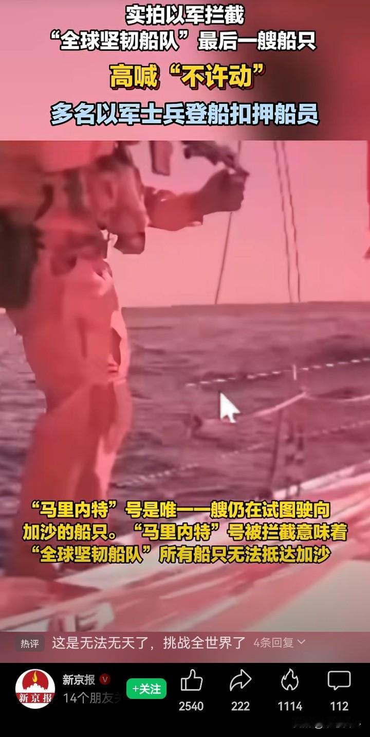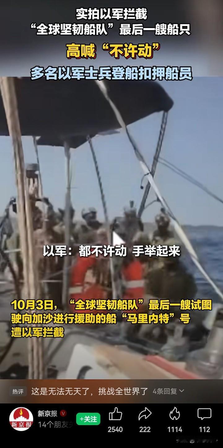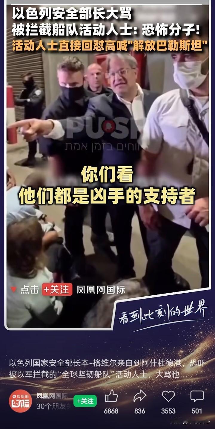 以色列:或者支持我们,不管我们干的什么事,否则你就是支持哈马斯,你就是恐怖分子! 如果依照以色列这大聪明的逻辑,这世界以后真的就只有两派了。一派是以色列、美国和估计少数还支持他们的人,余下的就是哈派了,都是恐怖分子。 这样的以色列逻辑,也太荒谬了!比如此次给加沙运送人道主义物资的“全球坚韧”船队,果然就都被拦截了,船上的乘员也都被扣留,而以色列国家安全部长本格维尔就去骂人家是恐怖分子…… 老实说,我这样平和的人,也肯定是支持“解放巴勒斯坦”的,加沙的巴勒斯坦人民(儿童妇女)又犯了什么罪呢?联合国也认定以色列是在进行种族灭绝了! 这就绝对成了以色列的敌人了啊。好在,我用的还是华为手机,多少安全一些吧……