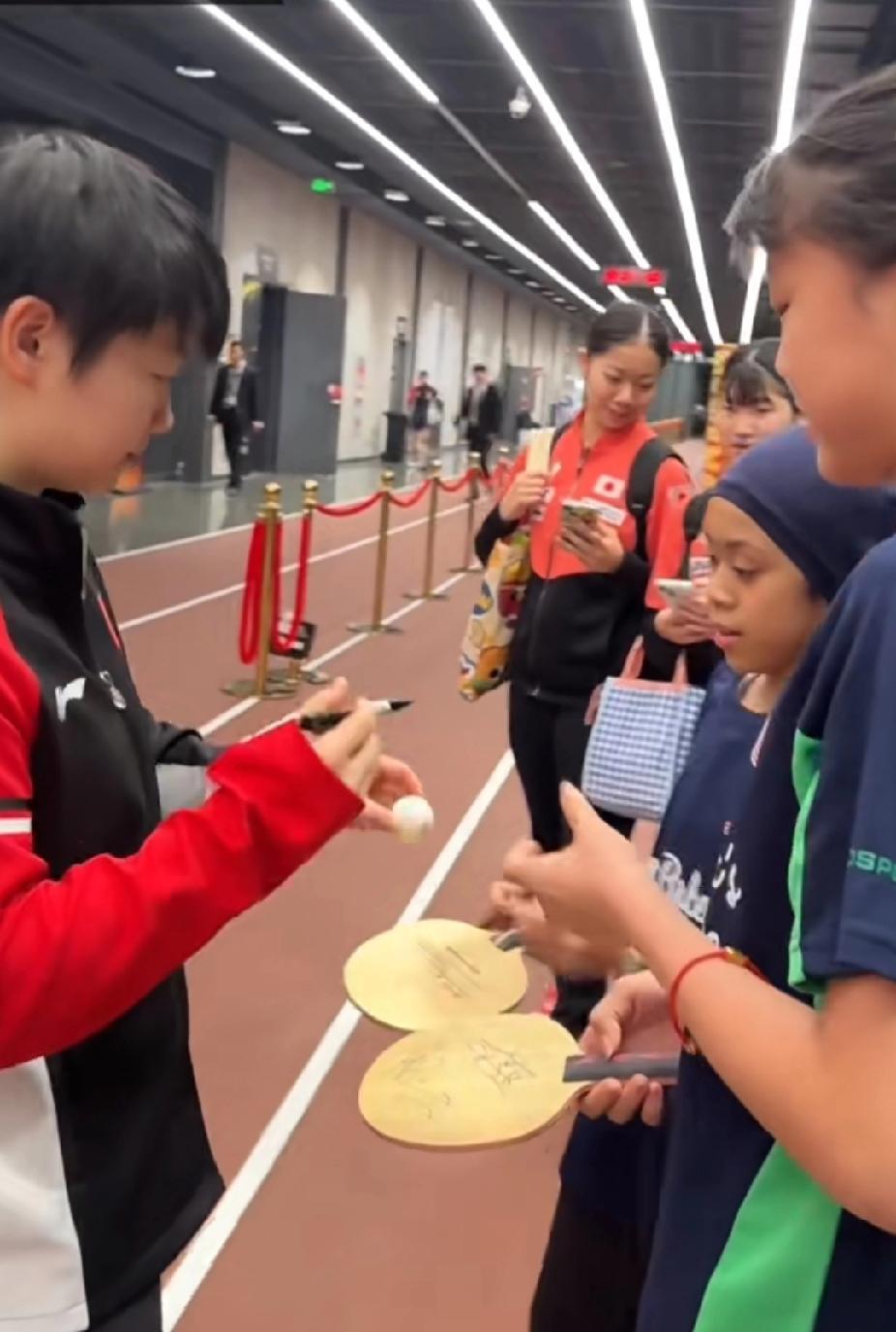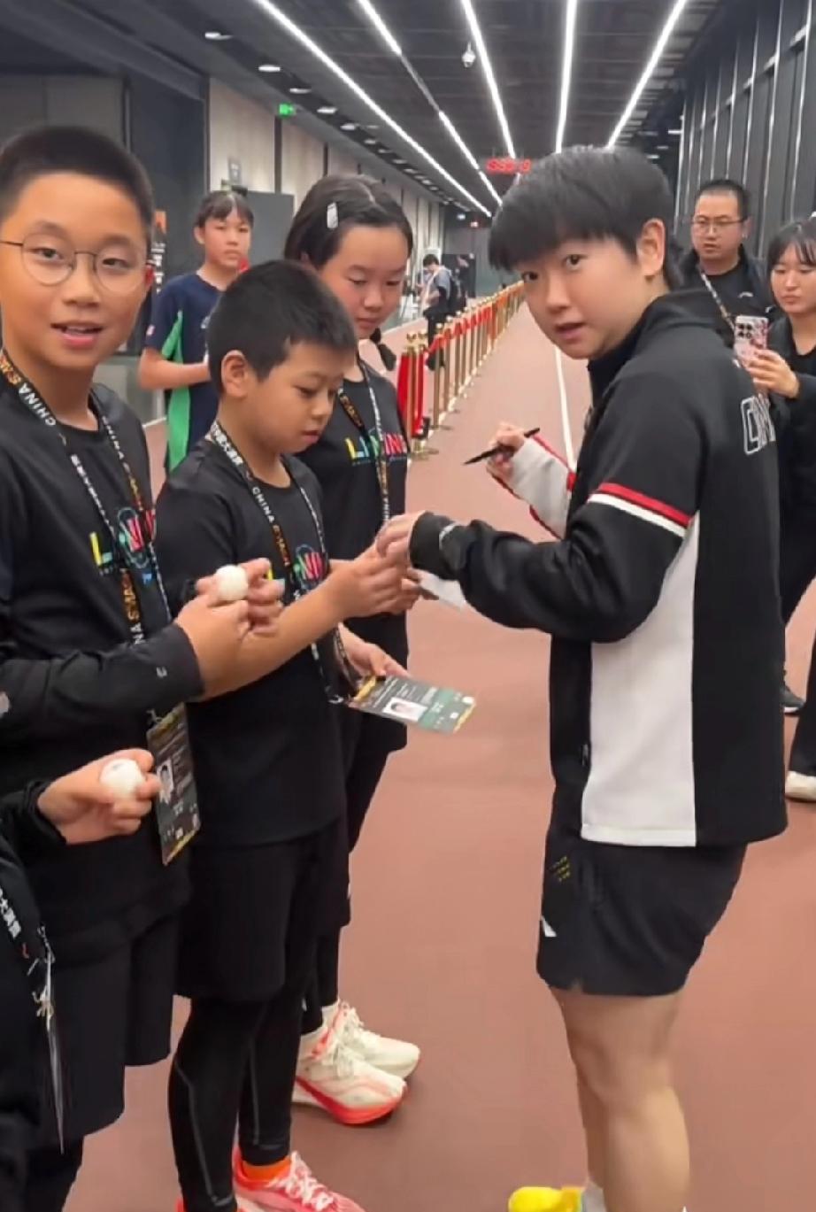 WTT北京大满贯暖心瞬间!孙颖莎赛场内外人气爆棚,成乒乓迷“团宠” 在2025年WTT中国大满贯赛事间隙,孙颖莎展现了超强的人气魅力。日本选手主动上前合影,小球迷们拿着乒乓球、球拍追着她要签名,现场处处是“莎迷”的身影。赛场上她是实力强劲的乒乓战将,赛场下她是亲和力满分的全民偶像,这样的莎莎谁能不爱呢!#孙颖莎# #团宠# #北京大满贯#