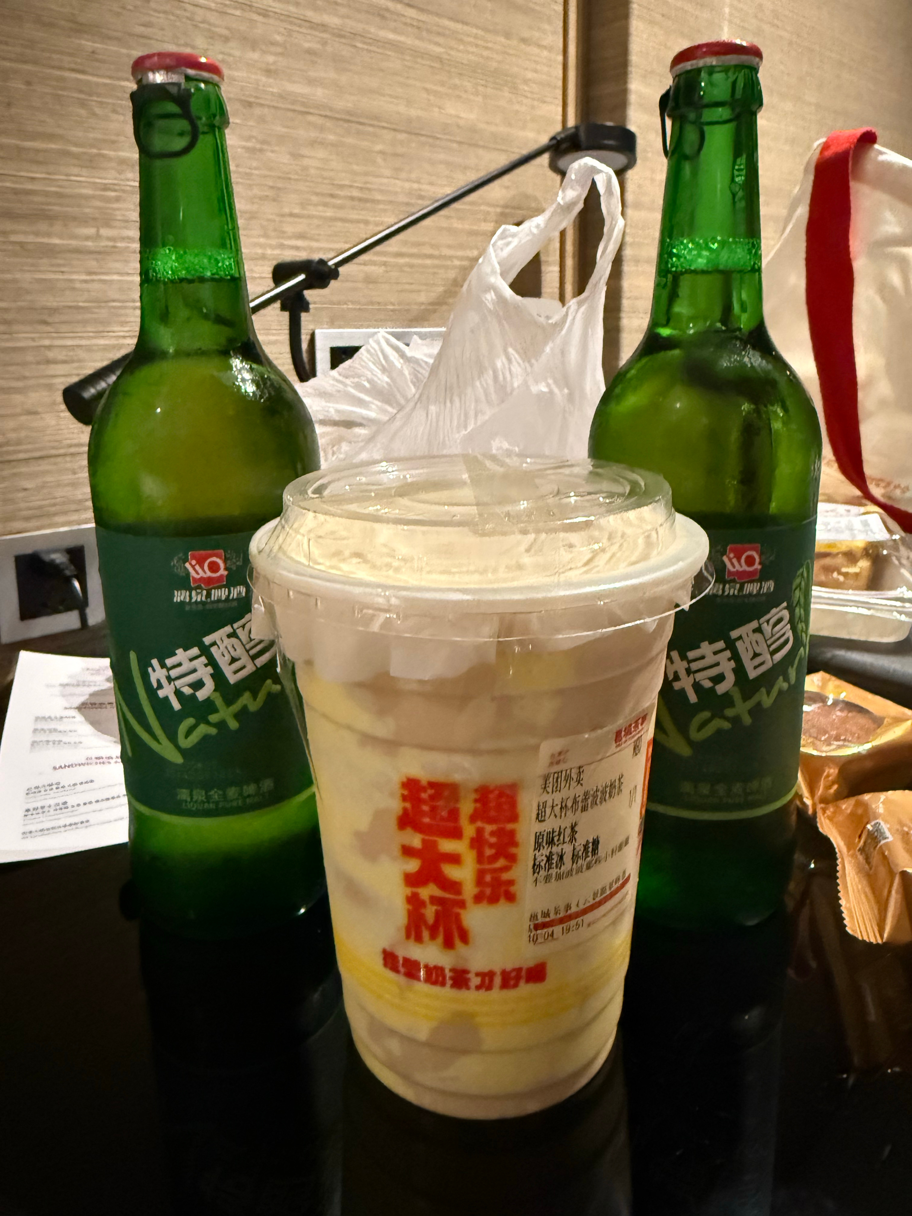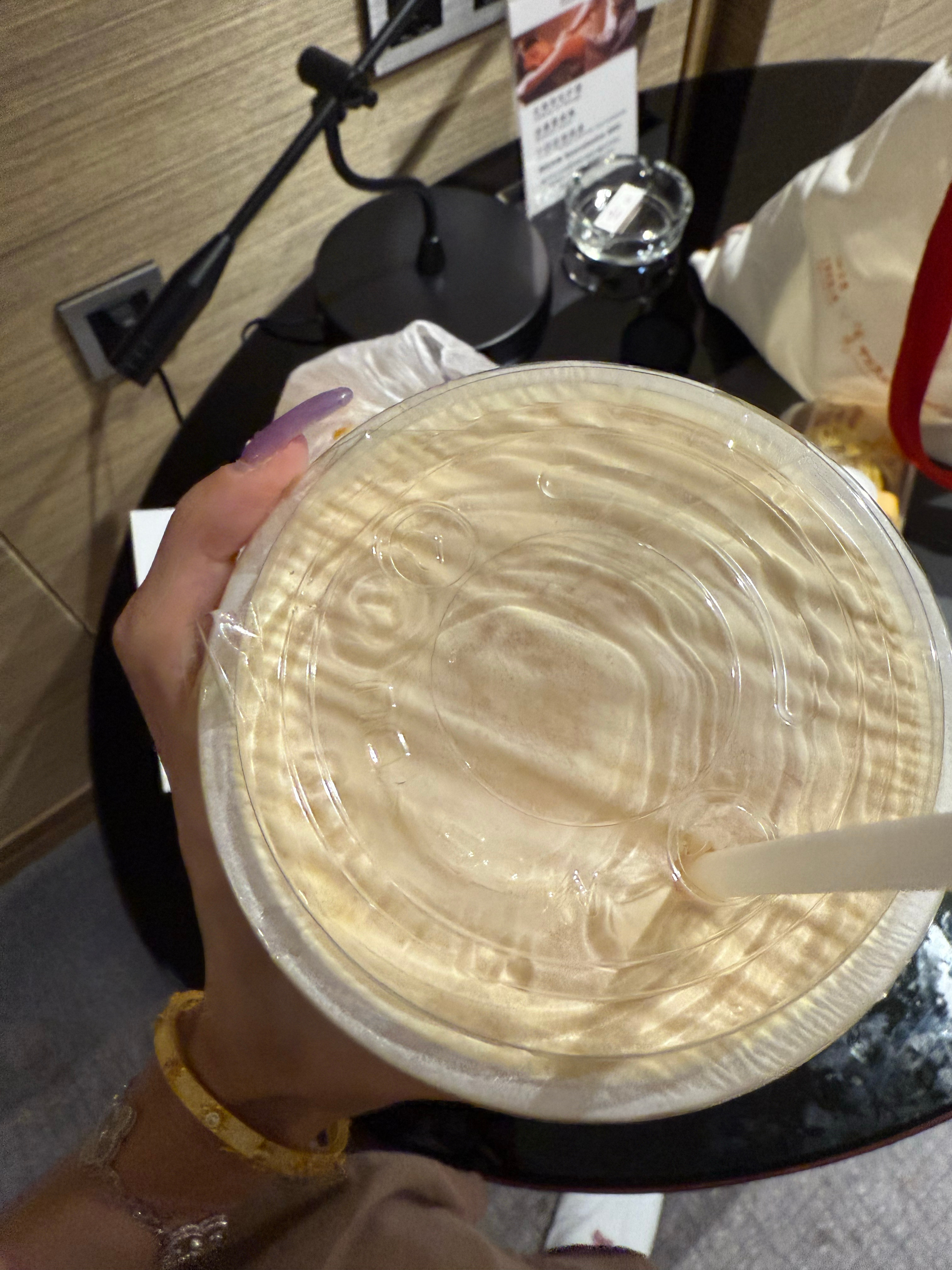 买了个超大杯奶茶结果有两个插吸管的孔买成分享装了是吧!