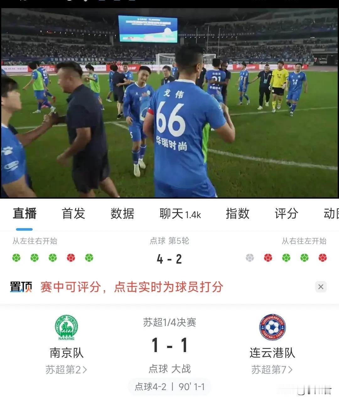 谁能想到,苏超的第一场淘汰赛就开始了点球大战,实在是刺激。南京最后依靠点球4-2