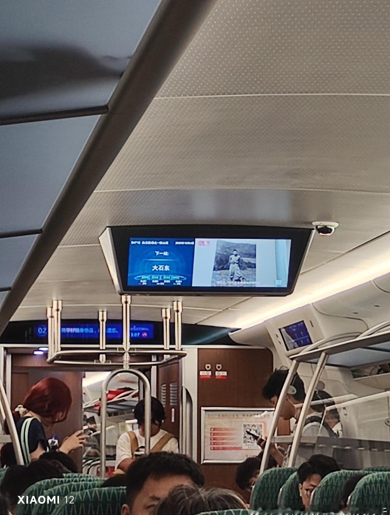 网友:2025.10.4(周六,国庆假期第四天 ) P1-2:13点03分,广州东环城际广州大学城站客流情况。 P3-4:S4713次列车(白云机场北→佛山西区间短线列车,4编组列车)往佛山西站方向,广州大学城→大石东区间内实况。