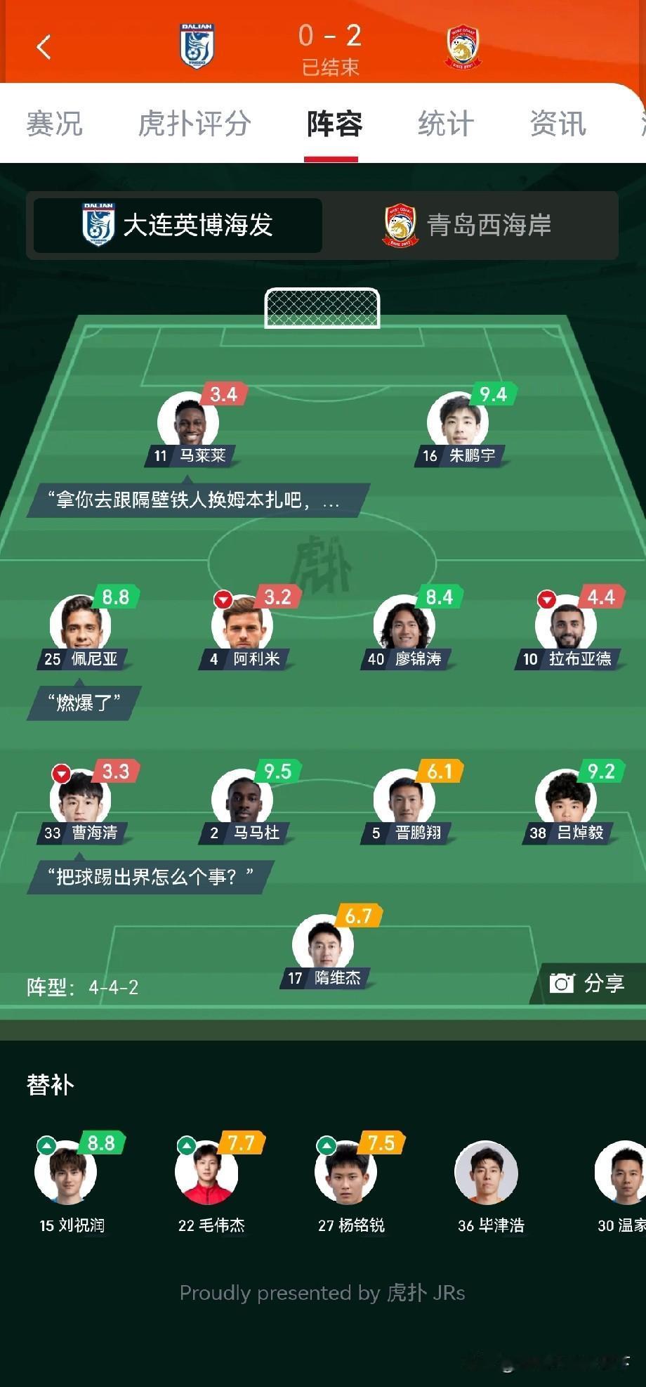大连队怎么又在主场输球了,真是白瞎球迷氛围和北看台的精心准备! 梭鱼湾最差一场球