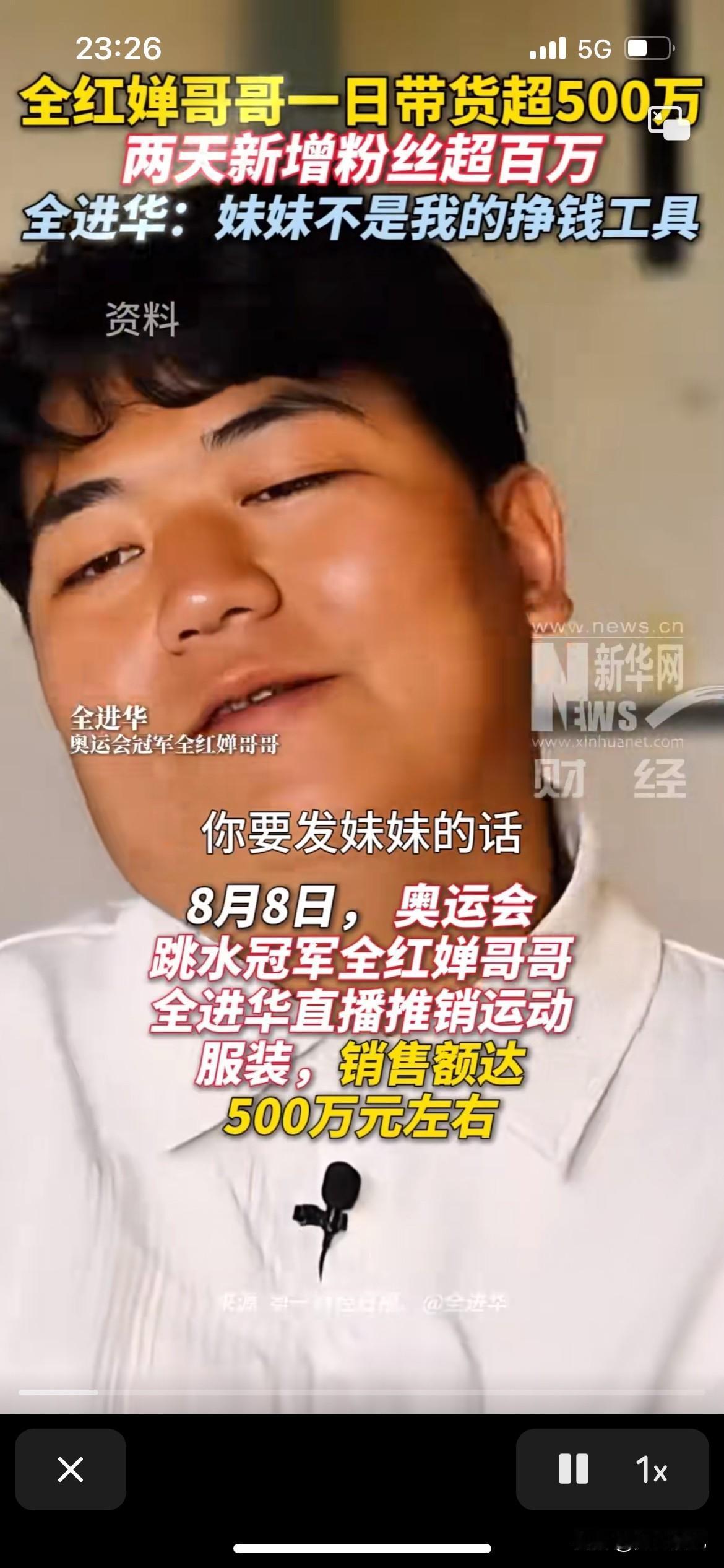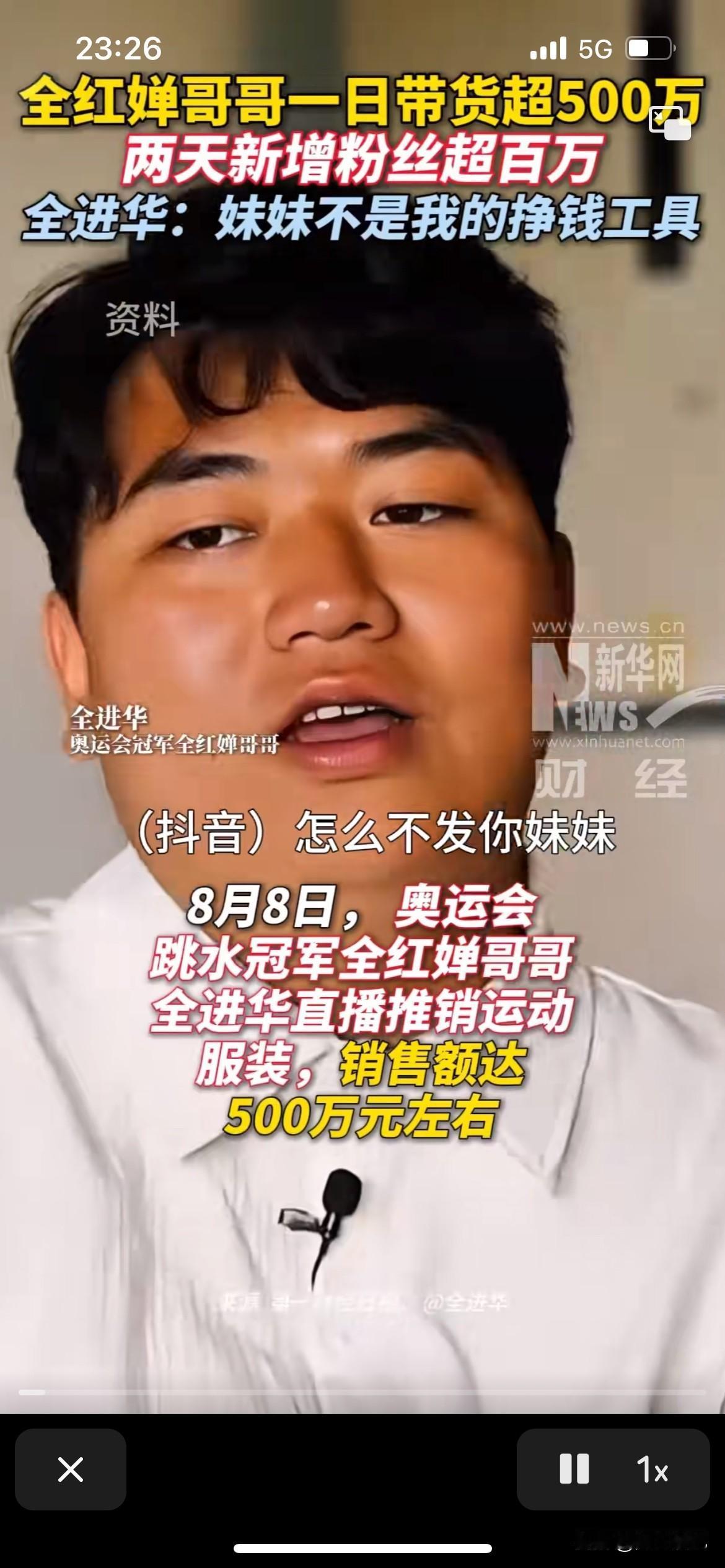 全红婵的哥哥不想把妹妹当作一种赚钱工具,所以就不会在视频直播发出来,不过全红婵冠军之后,他的粉丝量也迅速飙升上百万,但是他还不不想消耗自己的妹妹,只能自己努力赚钱。 妹妹是冠军,很厉害,可是改变不了妈妈的病痛,哥哥压力很大吧,家中老大,他真的好努力,要撑起这个家,普通老百姓没有任何机遇,全靠一步一个脚印。