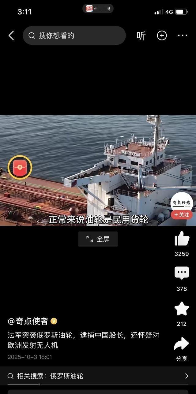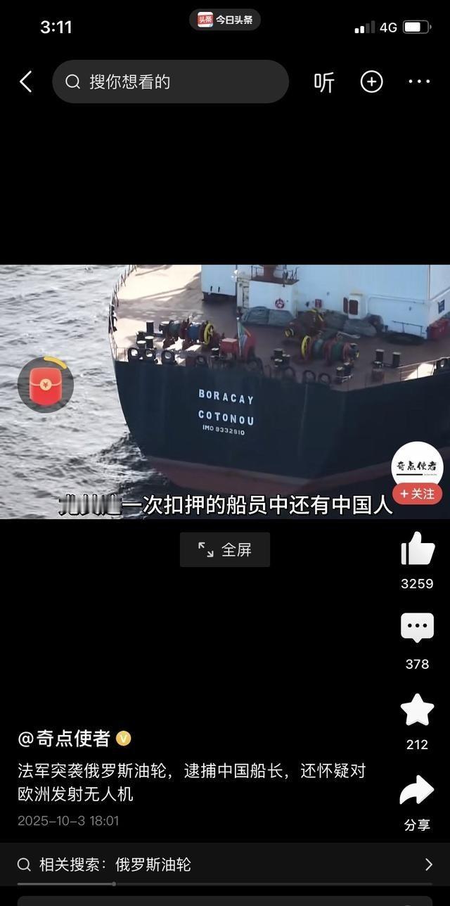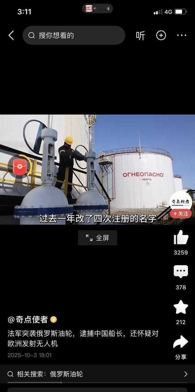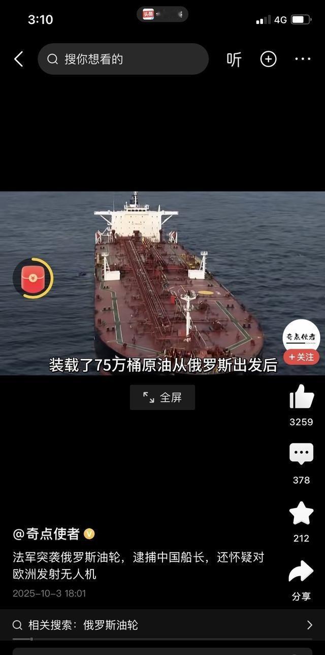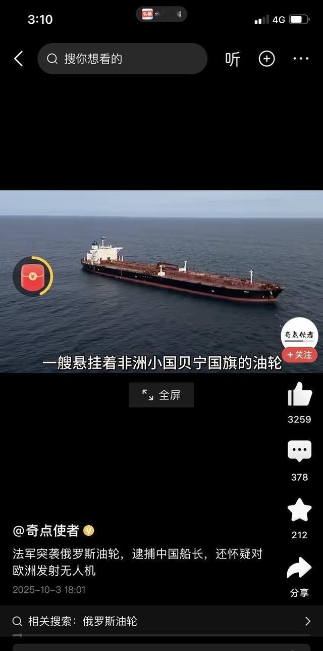 法国扣押的俄罗斯油船,没想到船长和大副都是中国人;目前法国官方彻底陷入麻烦——进退维谷!你就说吧,接下来怎么办?放人还货?你现在扣着轮船完全就是作死! 这事儿说起来挺闹心的,法国人本想在乌克兰问题上硬气一把,结果一脚踩进泥潭里。九月底,法国海军在大西洋布列塔尼附近的海域截停了一艘叫“Boracay”号的油轮,这船挂贝宁旗,载着十一万吨俄罗斯原油,正往印度赶。法国当局一口咬定这是俄罗斯“影子舰队”的一部分,用来绕过西方制裁偷偷运油。登船检查的时候,他们发现船长和大副居然是中国人,这下子麻烦大了。本来是针对俄罗斯的行动,冷不丁牵扯上中国船员,法国政府一下子被夹在中间,左右不是人。 先说说这艘船的来头。“Boracay”号以前叫别的名字,一年内改了四次旗帜和船名,就是为了躲避追踪。俄罗斯自从被西方制裁后,就靠这种“影子舰队”维持石油出口,这些船往往老旧、保险缺失,还爱走灰色航线。法国这次行动是欧盟整体策略的一部分,马克龙政府想通过实际操作来施压俄罗斯,支持乌克兰。但没想到,船上核心人员是中国籍,这让事情从单纯的制裁执法变成多边外交纠葛。中国船员在国际航运中很常见,很多第三方管理公司雇佣他们,因为专业可靠。可法国人一扣船,就等于无意中把中国拉下水。 事件爆发后,法国布雷斯特检察院动作很快。十月一日,他们宣布扣押油轮,并拘留了船长和大副两天。检察官斯蒂芬·凯伦贝格公开说,船长被指控“拒不配合执法”,因为在检查时没立即提供所有文件。结果,大副十月二日就放了,没起诉;船长虽然也获释,但得在二零二六年二月二十三日去布雷斯特法院出庭。如果罪名成立,最高判一年监禁,外加十五万欧元罚款。这笔罚款对个人来说不是小数目,监禁更会毁掉航海生涯。油轮本身十月三日晚上就解禁了,重新起航去苏伊士运河,目的地还是印度瓦迪纳尔港。整个过程不到一周,法国海军撤了人,船队恢复运营,看起来像是速战速决。 可这速决背后,法国官方的尴尬显而易见。一方面,俄罗斯总统普京直接开炮,二日在瓦尔代论坛上说法国这种扣船行为“破坏国际海事规则”,还警告会干扰全球能源贸易。俄罗斯外交部也发声明,称这是“非法拦截”,可能引发报复。普京这人说话向来不软,俄罗斯已经在能源市场上玩过猫腻,上次天然气危机就让欧洲冬天难熬。现在再加一把火,法国作为欧盟能源进口大户,首当其冲。另一方面,中国外交部和驻法使馆反应迅速,第一时间要求保障中国船员权益,强调要按国际法处理。中国一直维护本国公民海外合法利益,这次事件涉及航运企业,背后是中俄能源合作的影子。法国如果处理不当,不仅丢面子,还可能在“一带一路”项目上吃亏。 国际舆论也开始围观。欧盟内部有些国家支持法国,比如波罗的海沿岸国,觉得这是打击俄罗斯的好招。但更多声音质疑法国动机。BBC和CNN报道时都提到,这船油轮虽挂贝宁旗,但实际控制权在俄罗斯公司手里,扣船能起到多大作用?路透社分析说,“影子舰队”有上百艘,单抓一艘杯水车薪,还容易激化矛盾。法国媒体如France24直言,马克龙想借此刷存在感,但结果是外交成本飙升。想想看,法国正忙着奥运后遗症和国内罢工,这时候多树一个对手,值不值? 法国现在进退维谷,纯粹是自找苦吃。继续扣船?那等于公开挑衅中俄,俄罗斯可能切断更多能源通道,中国则在贸易谈判中卡脖子。欧盟数据显示,法国从俄罗斯进口石油虽降到零,但间接依赖“影子油”转手亚洲再买回来。扣紧了,油价一涨,法国消费者先炸锅。放人还船呢?表面上化解危机,但内部压力不小。美国和英国这些盟友推波助澜,觉得法国太软,影响北约团结。马克龙政府已经在欧盟峰会上辩解,说这是“必要执法”,但私下估计头疼不已。检察院放船的决定,其实就是权衡后的止损,避免事态升级。 说到底,这事儿暴露了西方制裁的尴尬。俄罗斯石油出口不降反升,今年上半年就卖了上亿吨,亚洲买家如印度和中国成了最大接盘侠。中国船员上俄罗斯船,本是市场行为,法国扣了人,就得面对后果。国际海事组织IMO有明确规则,登船检查要尊重船员权利,法国这次被指“过度使用武力”,虽没证据,但舆论已起。俄罗斯影子舰队问题不是一天两天,希腊、塞浦路斯这些国籍便利港,早成温床。欧盟去年就讨论过统一行动,但执行起来总有猫腻。