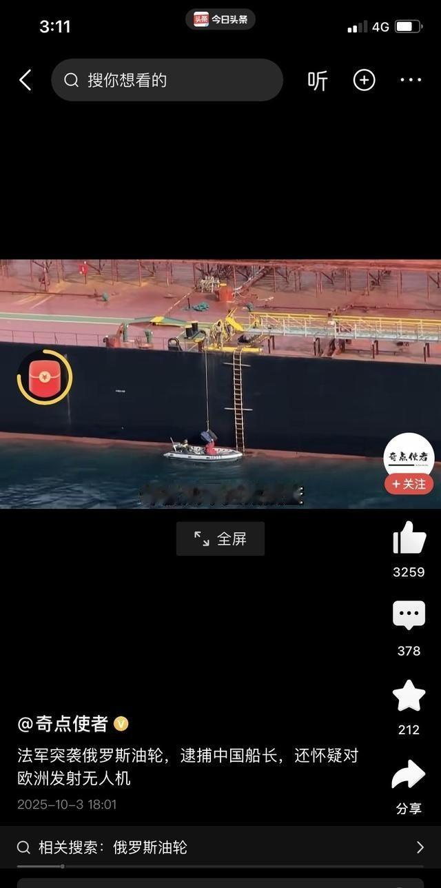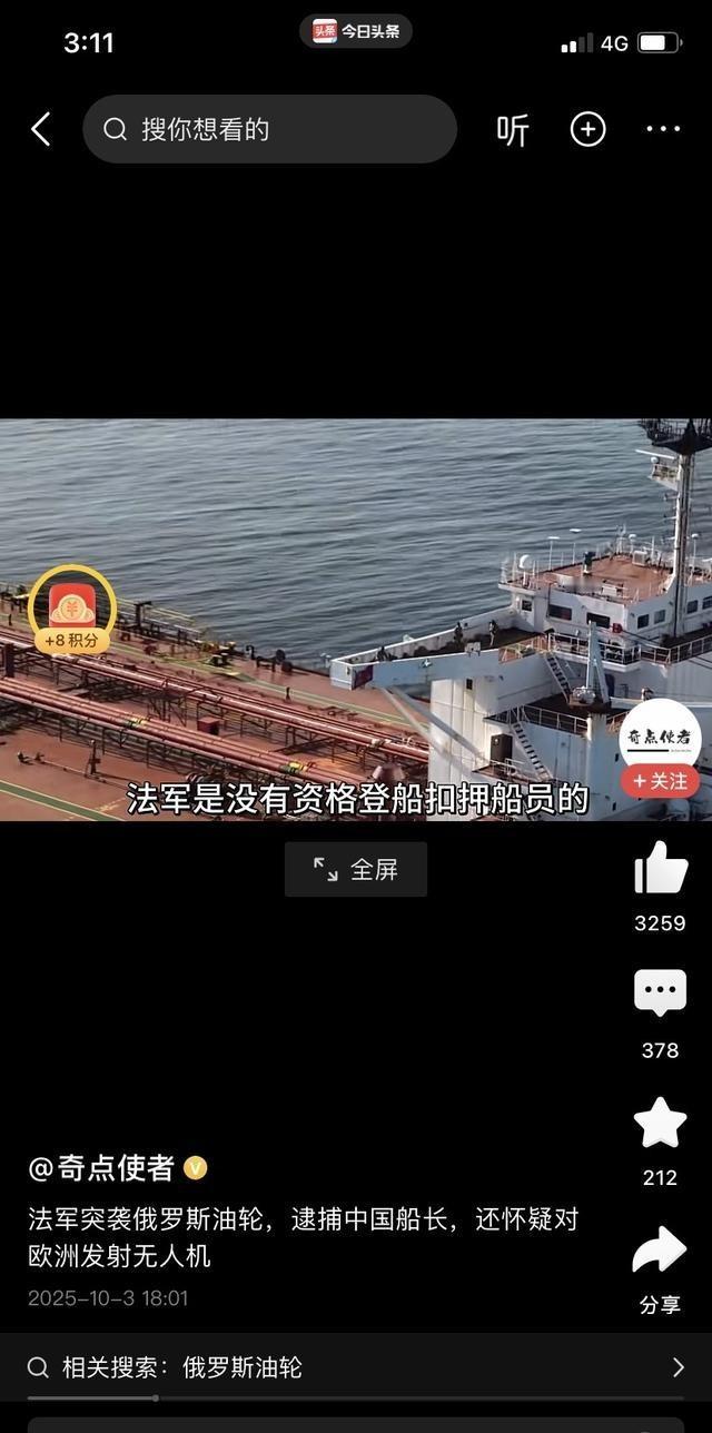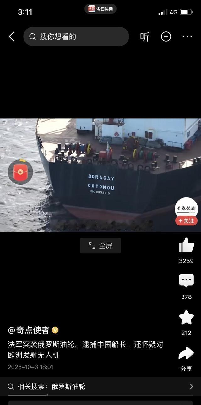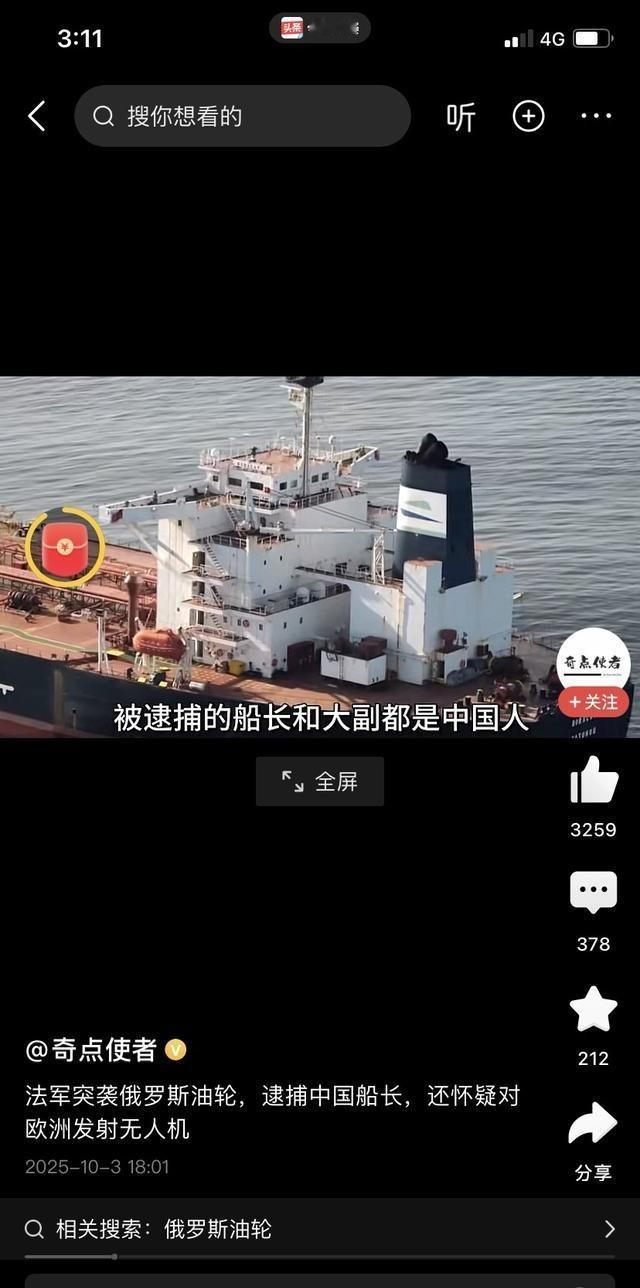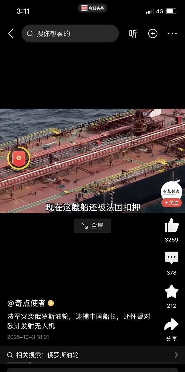 法国扣押的俄罗斯油船,没想到船长和大副都是中国人;目前法国官方彻底陷入麻烦——进退维谷!你就说吧,接下来怎么办?放人还货?你现在扣着轮船完全就是作死! 这事儿说起来挺闹心的,法国人本想在乌克兰问题上硬气一把,结果一脚踩进泥潭里。九月底,法国海军在大西洋布列塔尼附近的海域截停了一艘叫“Boracay”号的油轮,这船挂贝宁旗,载着十一万吨俄罗斯原油,正往印度赶。法国当局一口咬定这是俄罗斯“影子舰队”的一部分,用来绕过西方制裁偷偷运油。登船检查的时候,他们发现船长和大副居然是中国人,这下子麻烦大了。本来是针对俄罗斯的行动,冷不丁牵扯上中国船员,法国政府一下子被夹在中间,左右不是人。 先说说这艘船的来头。“Boracay”号以前叫别的名字,一年内改了四次旗帜和船名,就是为了躲避追踪。俄罗斯自从被西方制裁后,就靠这种“影子舰队”维持石油出口,这些船往往老旧、保险缺失,还爱走灰色航线。法国这次行动是欧盟整体策略的一部分,马克龙政府想通过实际操作来施压俄罗斯,支持乌克兰。但没想到,船上核心人员是中国籍,这让事情从单纯的制裁执法变成多边外交纠葛。中国船员在国际航运中很常见,很多第三方管理公司雇佣他们,因为专业可靠。可法国人一扣船,就等于无意中把中国拉下水。 事件爆发后,法国布雷斯特检察院动作很快。十月一日,他们宣布扣押油轮,并拘留了船长和大副两天。检察官斯蒂芬·凯伦贝格公开说,船长被指控“拒不配合执法”,因为在检查时没立即提供所有文件。结果,大副十月二日就放了,没起诉;船长虽然也获释,但得在二零二六年二月二十三日去布雷斯特法院出庭。如果罪名成立,最高判一年监禁,外加十五万欧元罚款。这笔罚款对个人来说不是小数目,监禁更会毁掉航海生涯。油轮本身十月三日晚上就解禁了,重新起航去苏伊士运河,目的地还是印度瓦迪纳尔港。整个过程不到一周,法国海军撤了人,船队恢复运营,看起来像是速战速决。 可这速决背后,法国官方的尴尬显而易见。一方面,俄罗斯总统普京直接开炮,二日在瓦尔代论坛上说法国这种扣船行为“破坏国际海事规则”,还警告会干扰全球能源贸易。俄罗斯外交部也发声明,称这是“非法拦截”,可能引发报复。普京这人说话向来不软,俄罗斯已经在能源市场上玩过猫腻,上次天然气危机就让欧洲冬天难熬。现在再加一把火,法国作为欧盟能源进口大户,首当其冲。另一方面,中国外交部和驻法使馆反应迅速,第一时间要求保障中国船员权益,强调要按国际法处理。中国一直维护本国公民海外合法利益,这次事件涉及航运企业,背后是中俄能源合作的影子。法国如果处理不当,不仅丢面子,还可能在“一带一路”项目上吃亏。 国际舆论也开始围观。欧盟内部有些国家支持法国,比如波罗的海沿岸国,觉得这是打击俄罗斯的好招。但更多声音质疑法国动机。BBC和CNN报道时都提到,这船油轮虽挂贝宁旗,但实际控制权在俄罗斯公司手里,扣船能起到多大作用?路透社分析说,“影子舰队”有上百艘,单抓一艘杯水车薪,还容易激化矛盾。法国媒体如France24直言,马克龙想借此刷存在感,但结果是外交成本飙升。想想看,法国正忙着奥运后遗症和国内罢工,这时候多树一个对手,值不值? 法国现在进退维谷,纯粹是自找苦吃。继续扣船?那等于公开挑衅中俄,俄罗斯可能切断更多能源通道,中国则在贸易谈判中卡脖子。欧盟数据显示,法国从俄罗斯进口石油虽降到零,但间接依赖“影子油”转手亚洲再买回来。扣紧了,油价一涨,法国消费者先炸锅。放人还船呢?表面上化解危机,但内部压力不小。美国和英国这些盟友推波助澜,觉得法国太软,影响北约团结。马克龙政府已经在欧盟峰会上辩解,说这是“必要执法”,但私下估计头疼不已。检察院放船的决定,其实就是权衡后的止损,避免事态升级。 说到底,这事儿暴露了西方制裁的尴尬。俄罗斯石油出口不降反升,今年上半年就卖了上亿吨,亚洲买家如印度和中国成了最大接盘侠。中国船员上俄罗斯船,本是市场行为,法国扣了人,就得面对后果。国际海事组织IMO有明确规则,登船检查要尊重船员权利,法国这次被指“过度使用武力”,虽没证据,但舆论已起。俄罗斯影子舰队问题不是一天两天,希腊、塞浦路斯这些国籍便利港,早成温床。欧盟去年就讨论过统一行动,但执行起来总有猫腻。