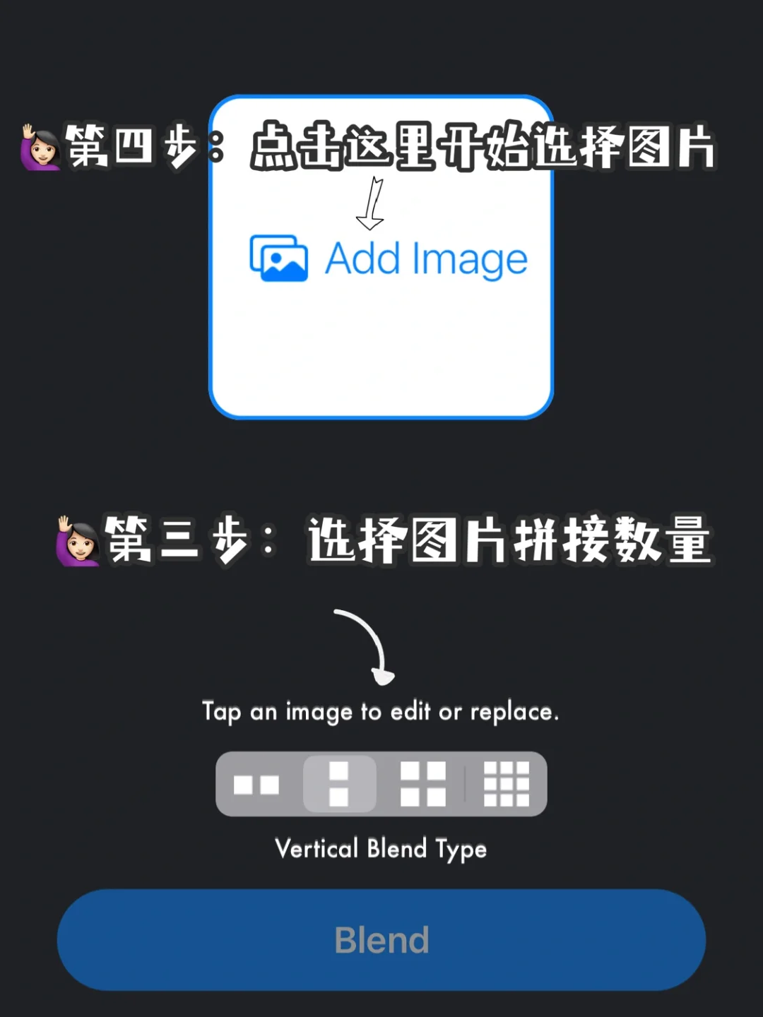 博主超爱用的拼图App 可以让图片边缘羽化混合 效果特别自然,质感超高级 关键是免费的~使用流程也超简易‼️ . 🔍拼图App:Photo blender . 因为App是纯英文的 不过不用担心看起来费劲 我已经把使用教程标注清楚了 教程👉🏻:图2️⃣-图6️⃣ . 🛎有一个需要注意的地方:以4图拼接为例,假如你选择的4张图片里有一张是横图,另外3张是竖图,那么导出的效果图就会默认为正方形,而不是4:3的长方形了,所以一定要确认所有图片的横竖问题~ .