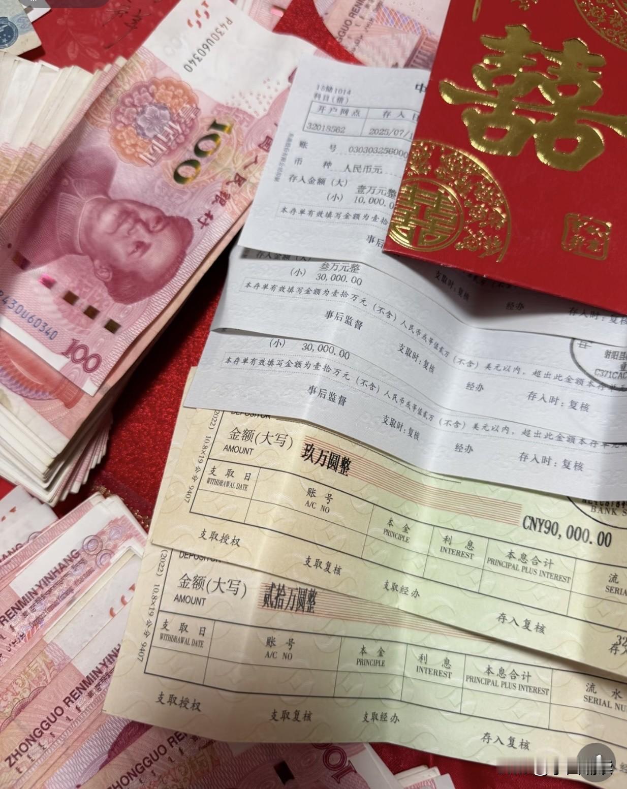 哇塞,说实话,我真没见过这么大世面,结婚收礼金竟然收到这么多的支票,这些亲戚真是有钱人啊!想想我当年结婚,收到最大的红包也就2000块,和这里相比真是寒碜到地底下了啊!顺便问问:收这么多礼金红包,会不会出现被人顺手牵羊拿走几个啊?