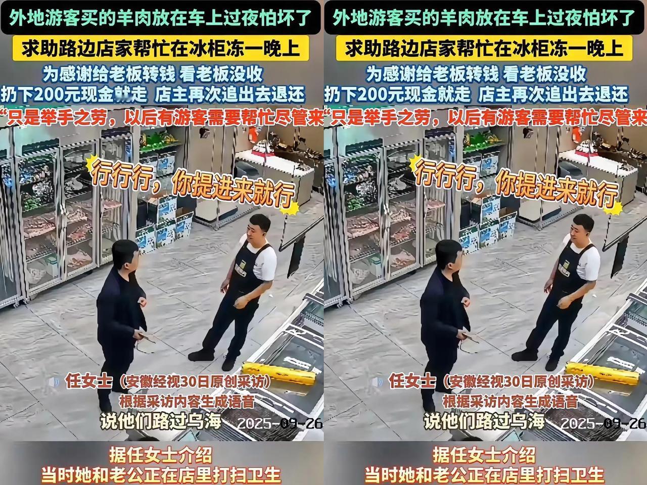 活该人家发财! 内蒙老板免费帮游客冻羊肉 没收钱却迎来爆红商机。 男子在内蒙旅游买了只羊,怕放车里坏了,找路边店家借冰柜。老板不仅一口答应,还特意收拾出空间。男子要转200块感谢,老板硬是没收。第二天拿现金去塞,还是没成。 本以为这事儿就这么过了,结果男子写了篇稿子投给自媒体,没想到文章爆了。店家因为这份真诚,成了游客信赖的商家,生意火得不行。 这事儿看着像剧本,但它是真的。其实好人有好报不是空话,有时候善良就是最好的营销。你遇到过这种暖心的商家吗?