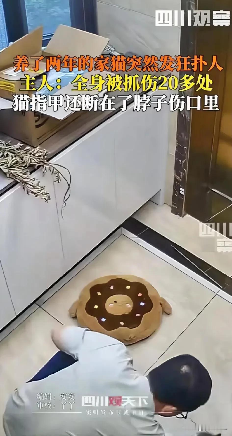 太吓人了!武汉一男子在家逗猫玩,没想到,养了2年的猫竟然发狂,对着男子就是一阵乱