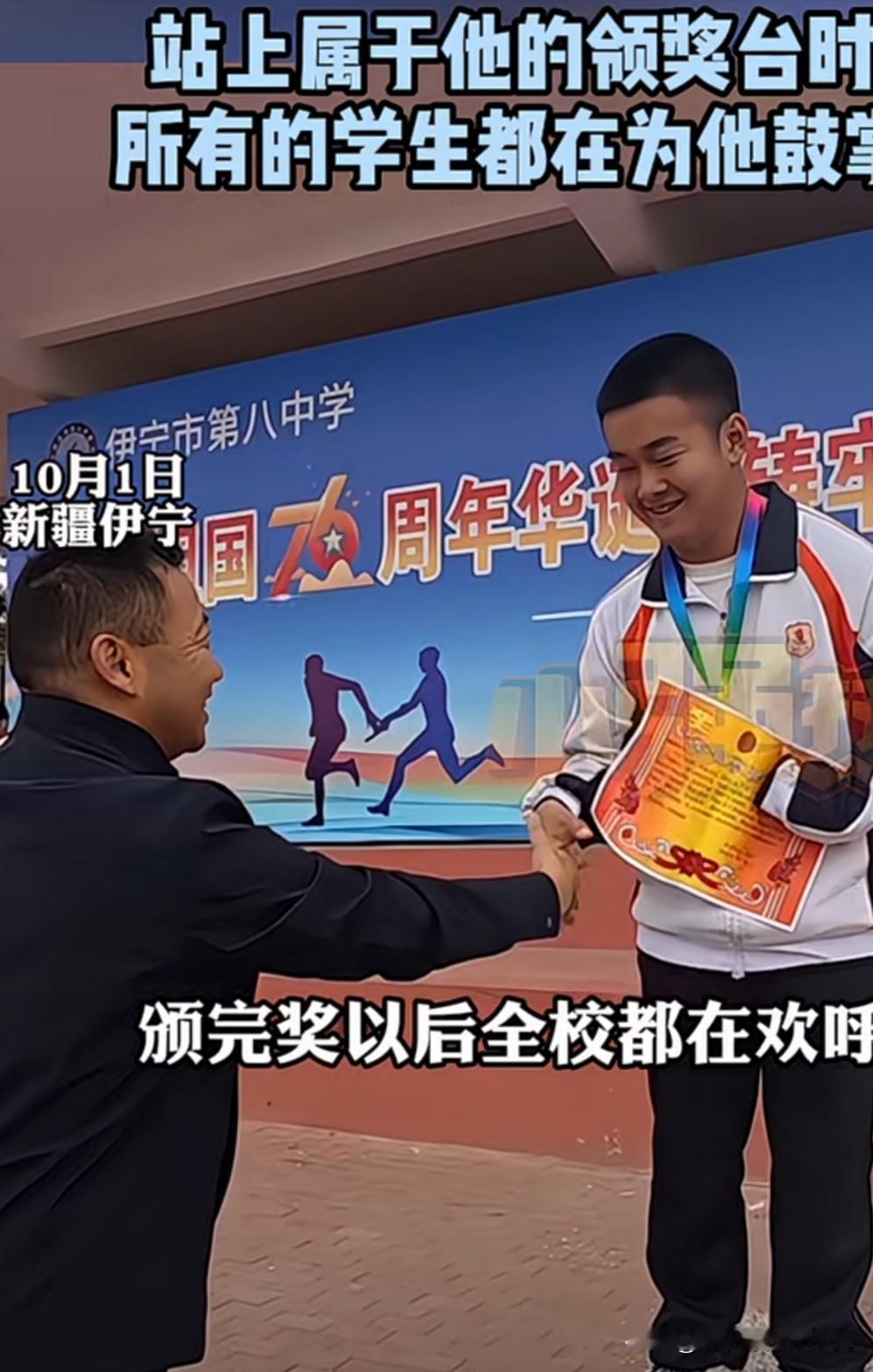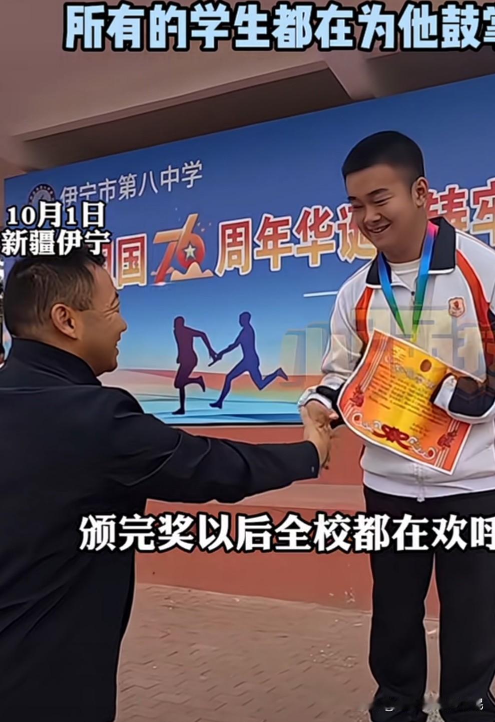 学校运动会半瘫学生报名3000米 身体健康的学生跑3000米都会觉得很累,但是他坚持跑,他跑了一圈又一圈,老师担心他有什么意外,想直接给他拉线,让他冲线的。但是他摆摆手拒绝,告诉老师“我还能跑”。坚持又跑了五圈后,老师又重新给他拉线,他冲过线后,全场师生都在为他欢呼! 他没有因为身体残疾就呆坐一旁,他经常参加一些健康跑。有爱的学校,老师,学生。为他加油!