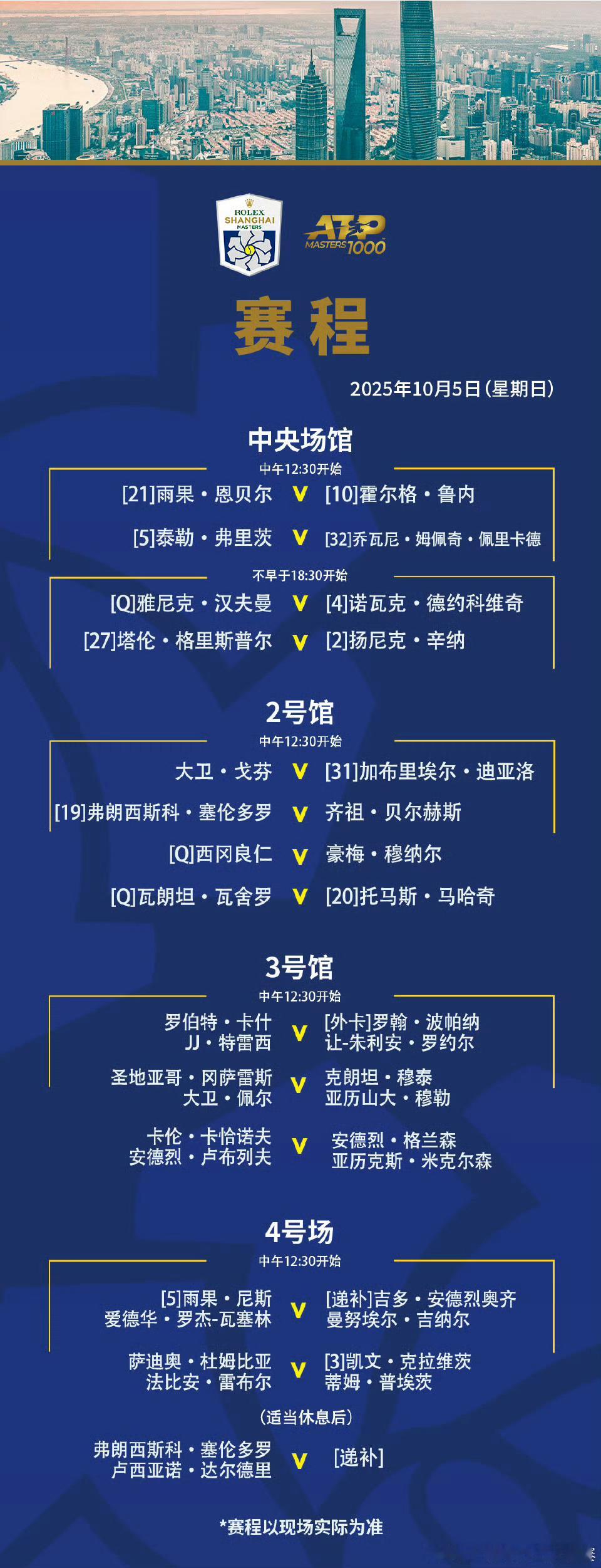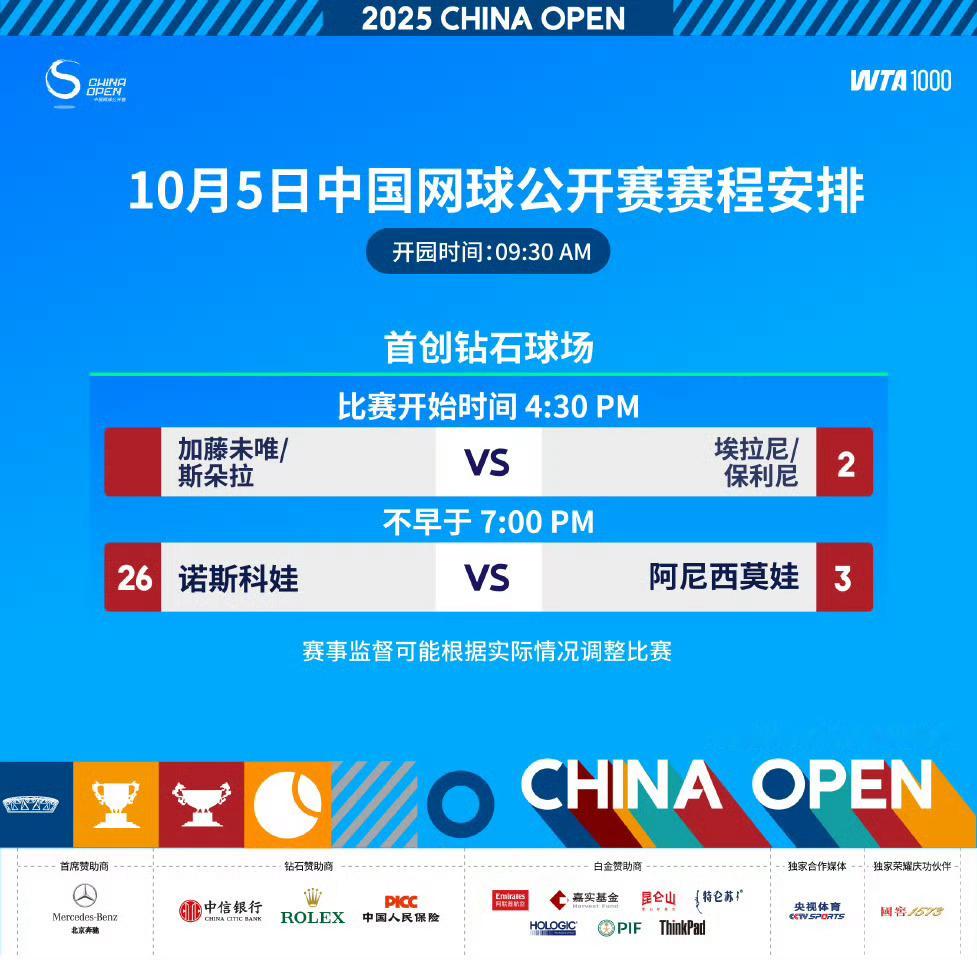 中网今天进入最后一天,进行女单和女双决赛,其中女单决赛是晚上7点;上海大师赛今日夜场也非常劲爆,德约辛纳携手登场。