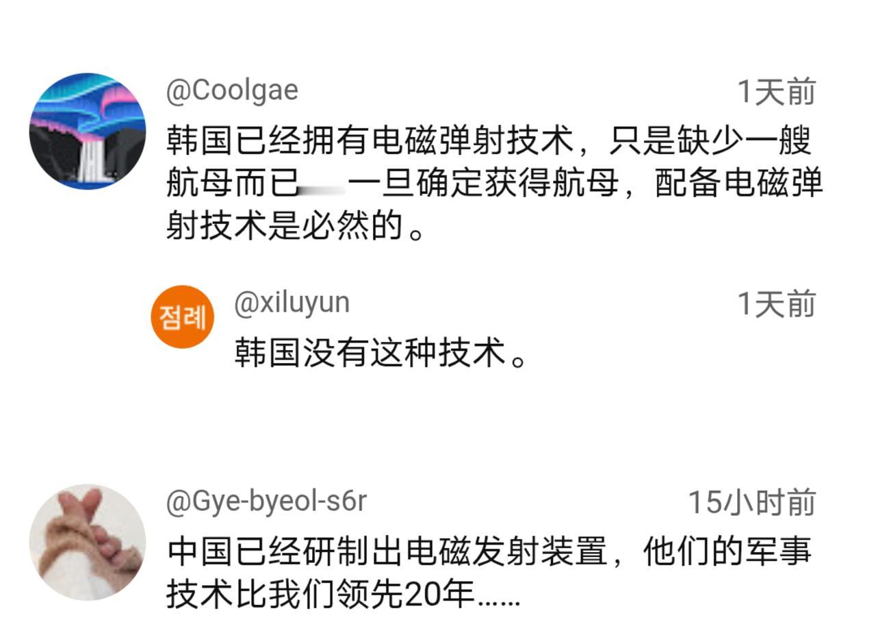 韩网友:进步太快,韩国已无力追赶。 当今世界只有中美两家掌握了电磁弹的技术,可两国技术路线则完全不同:我国采用是直流电磁弹射;而老美的则是交流电磁弹射。 相较于蒸汽弹射、电磁弹射拥有效率高、维护和使成本低等优点,但其研制的门槛要高于蒸汽弹射装置。10月4日,就有韩媒对此进行了介绍。 闻讯后的韩网友自然不淡定:其一、我国科技的突破速度超出了他们的预料;其二、他们希望韩国能够尽快跟上。 电磁弹射是未来航母的标配,由于技术门槛等原因,除了中美两国之后其它国家或很难在掌握…