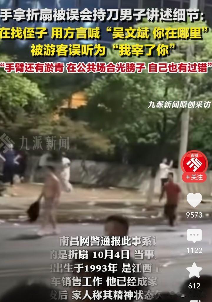真是大乌龙事件!10月1日,南昌一男子只是手持扇子去看烟花秀,没想到却被人误以为