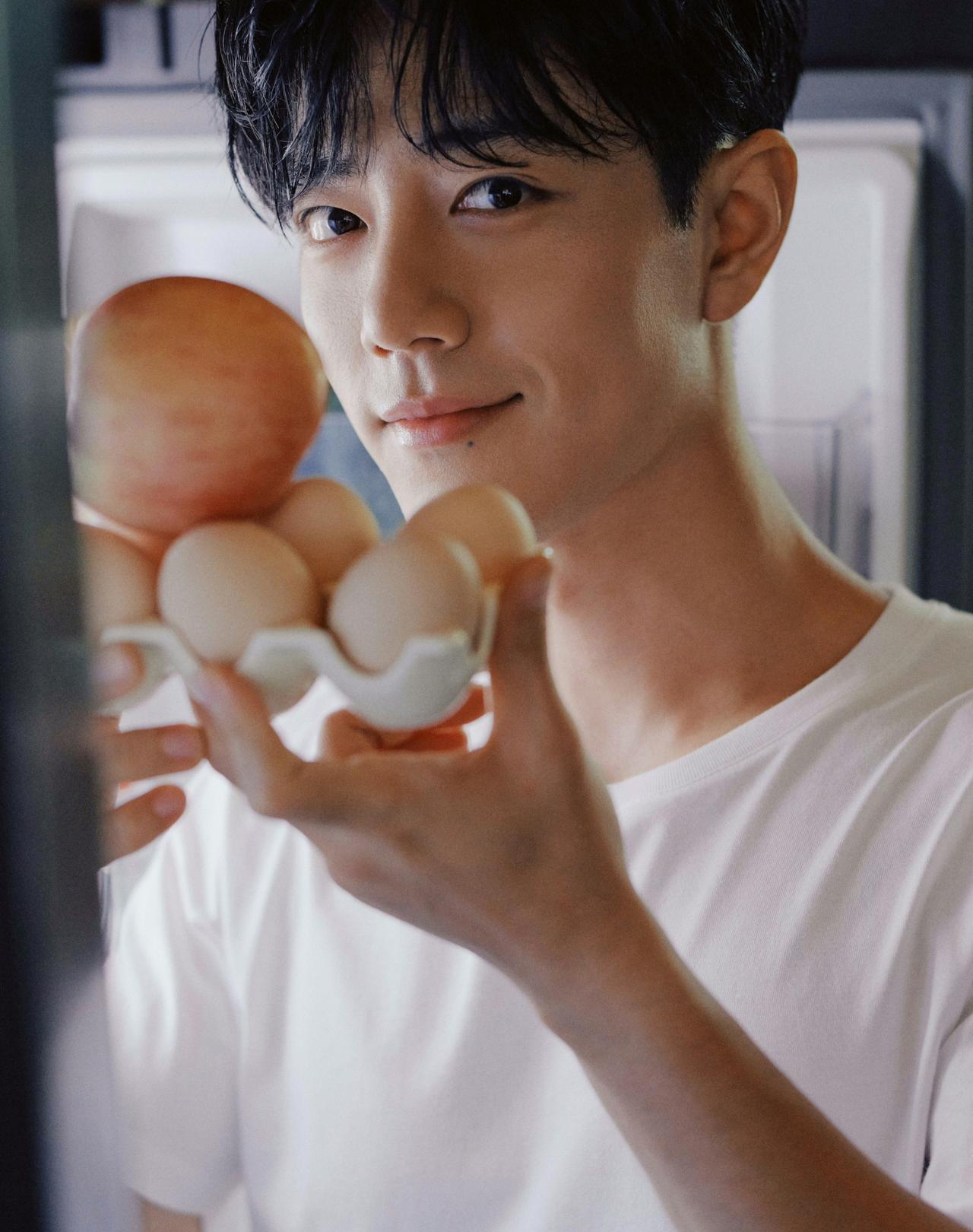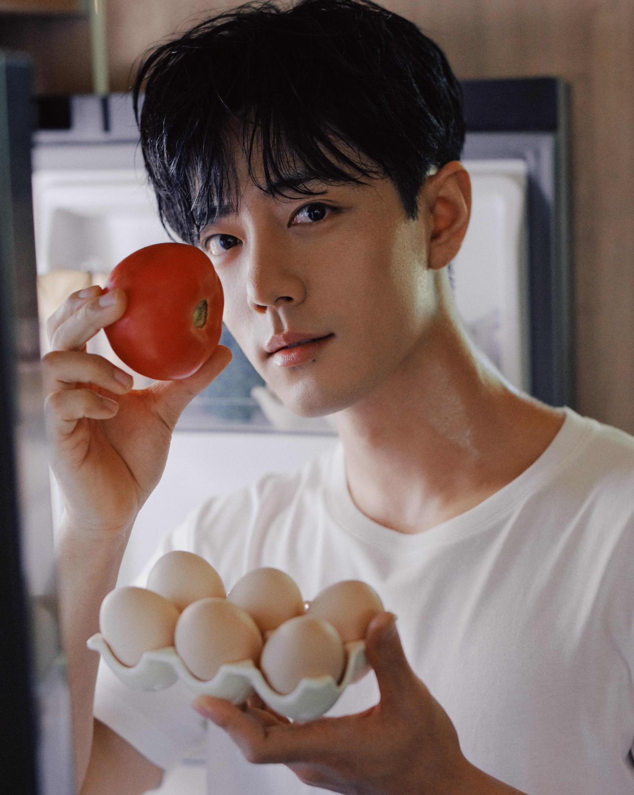 如果说蛋糕那套走可爱风的话,那白T这套就是苏感满满荷尔蒙爆棚了—— 放下的刘海,含情的双眸,结实的胸肌,带着水汽的脖颈,有一种一大清早醒来看到他正在做早餐发现你后朝着你微笑的怦然心动。 迷人得要命!很多时候极致的性感就是如此的简洁! (p6,肖战好长一条人啊笑)