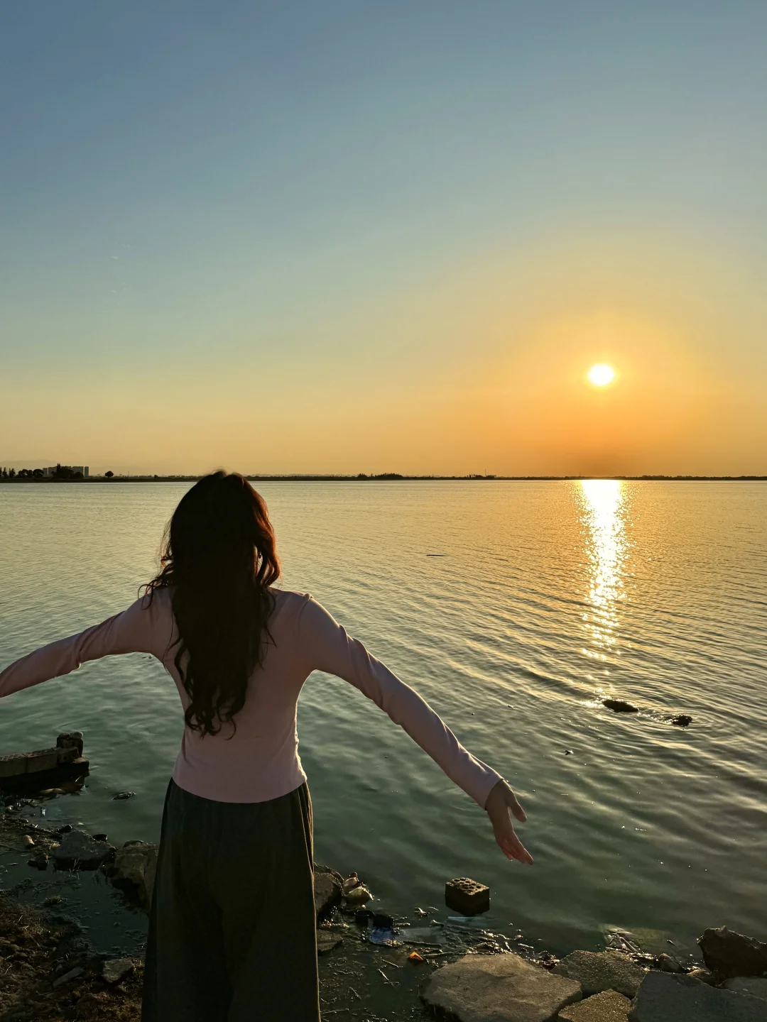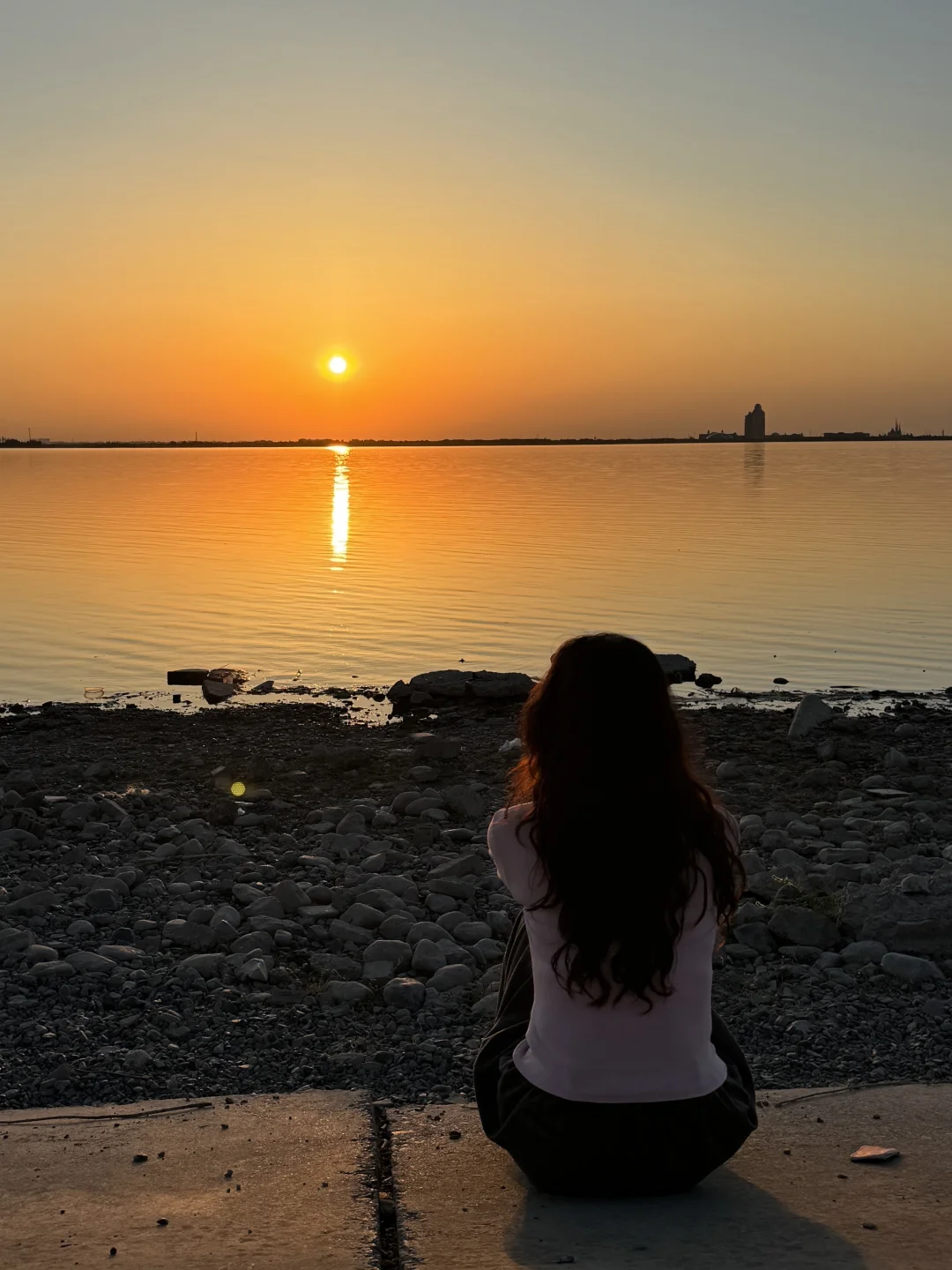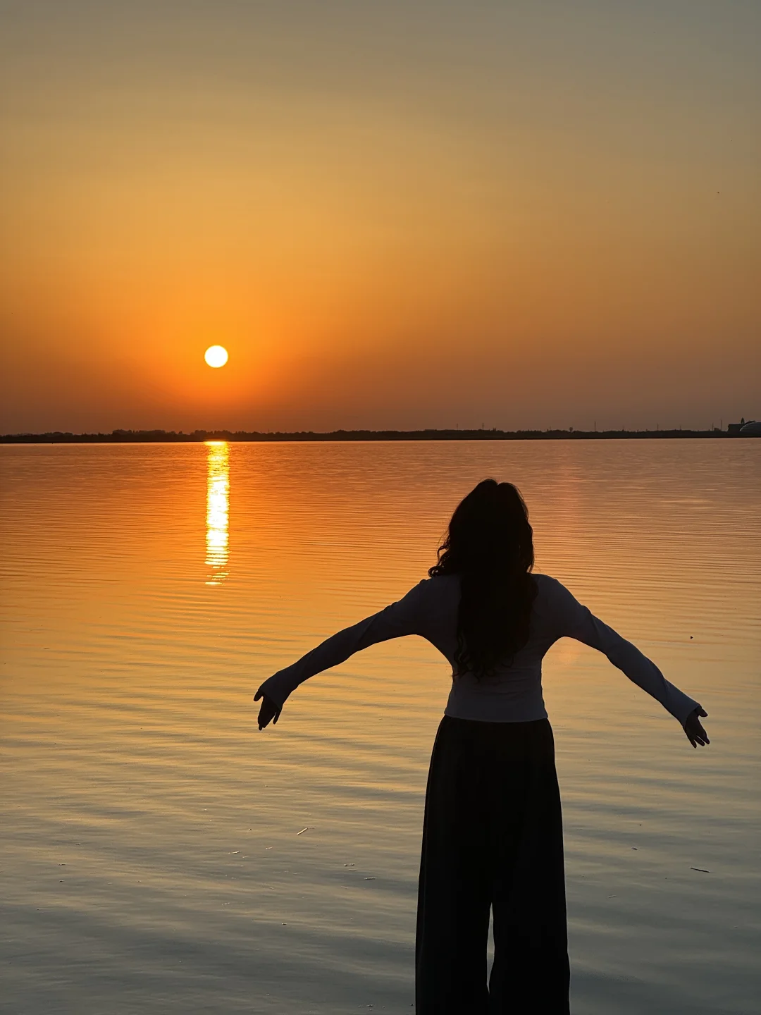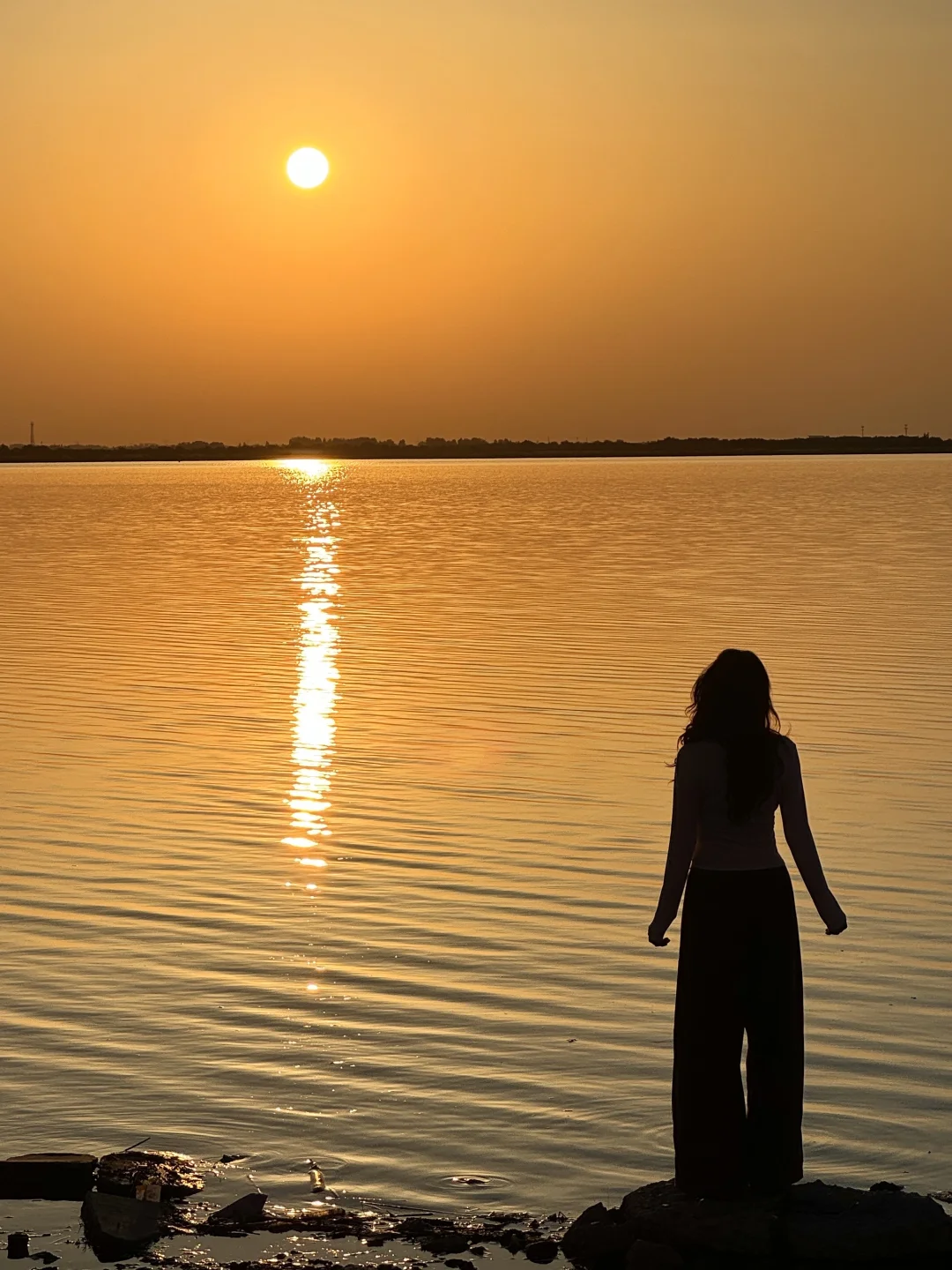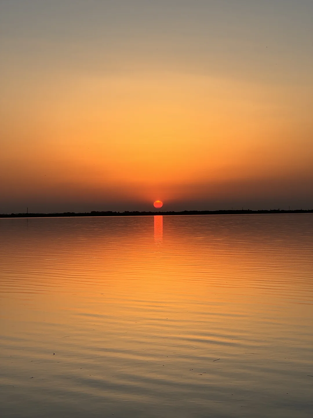 整个水面映衬着橘黄,泛着波光粼粼