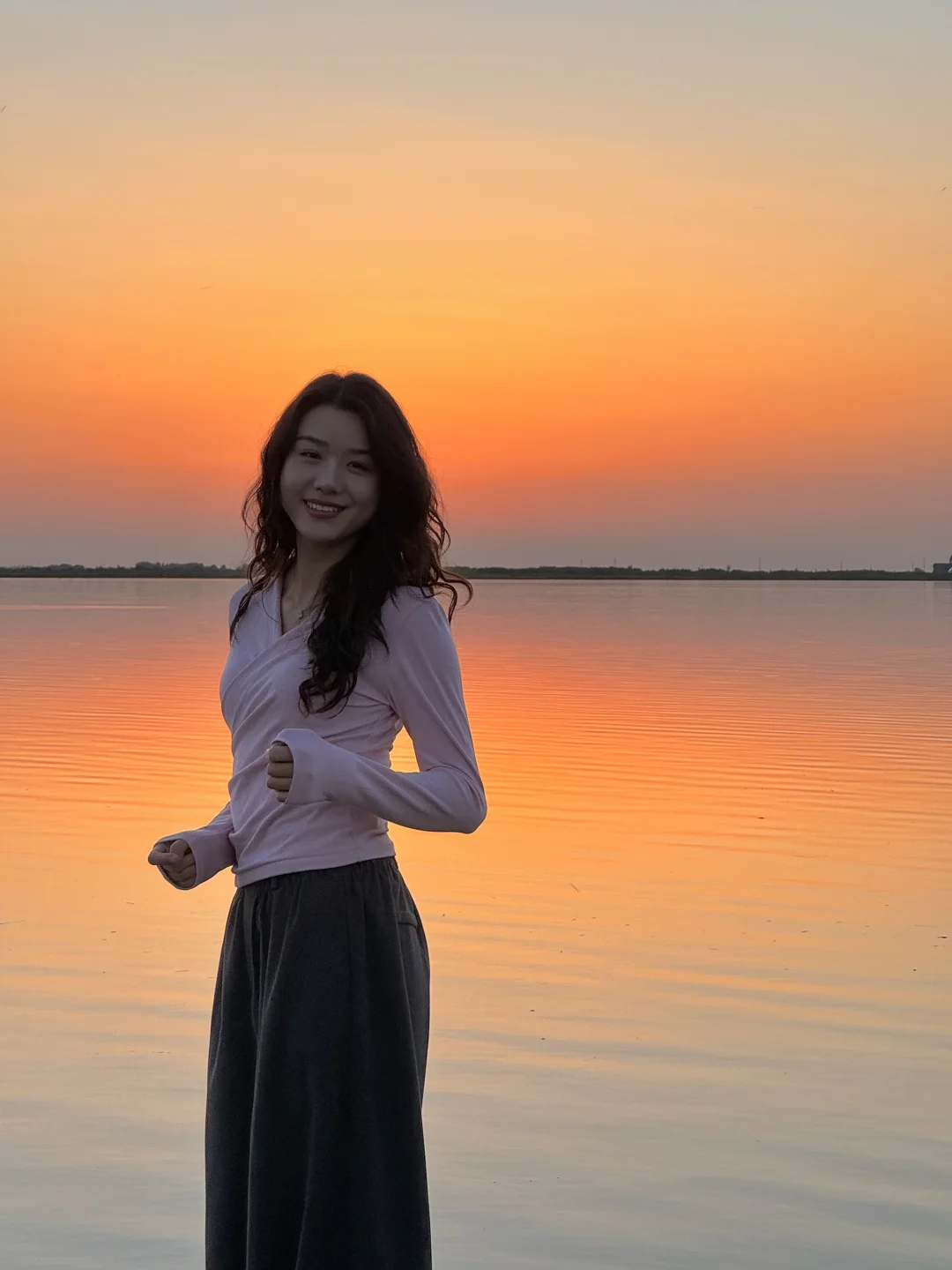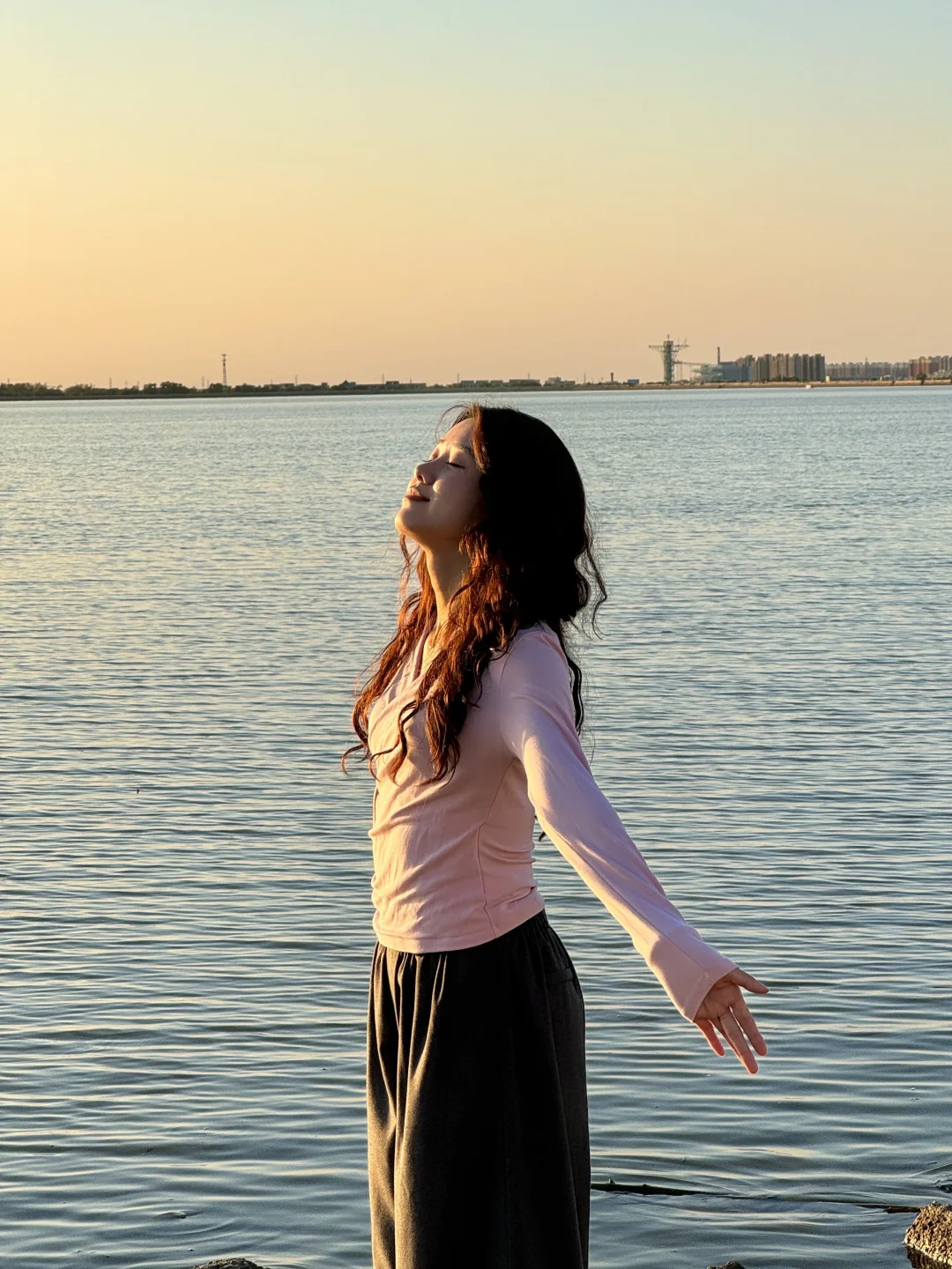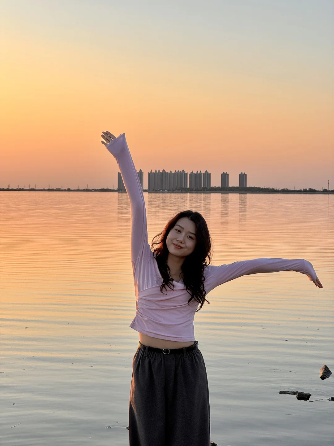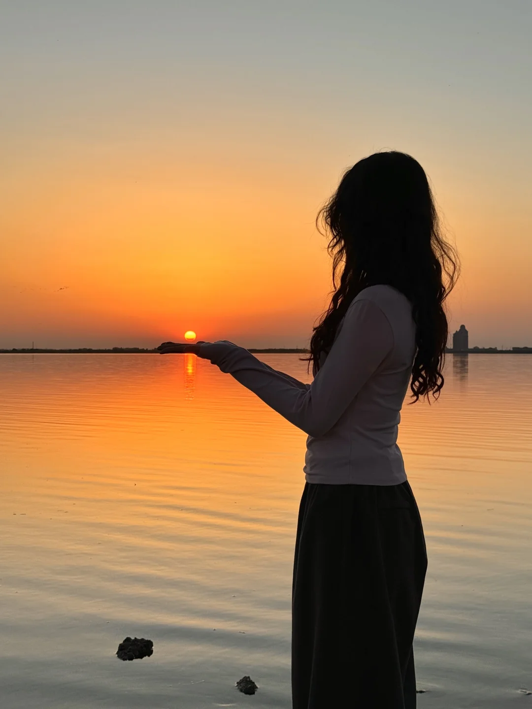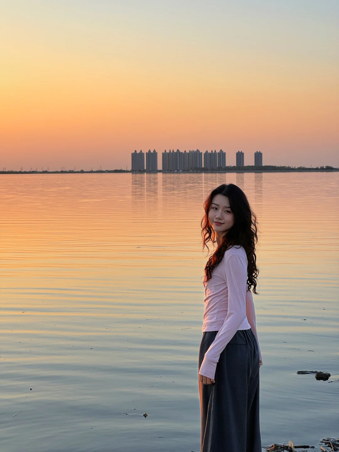 整个水面映衬着橘黄,泛着波光粼粼