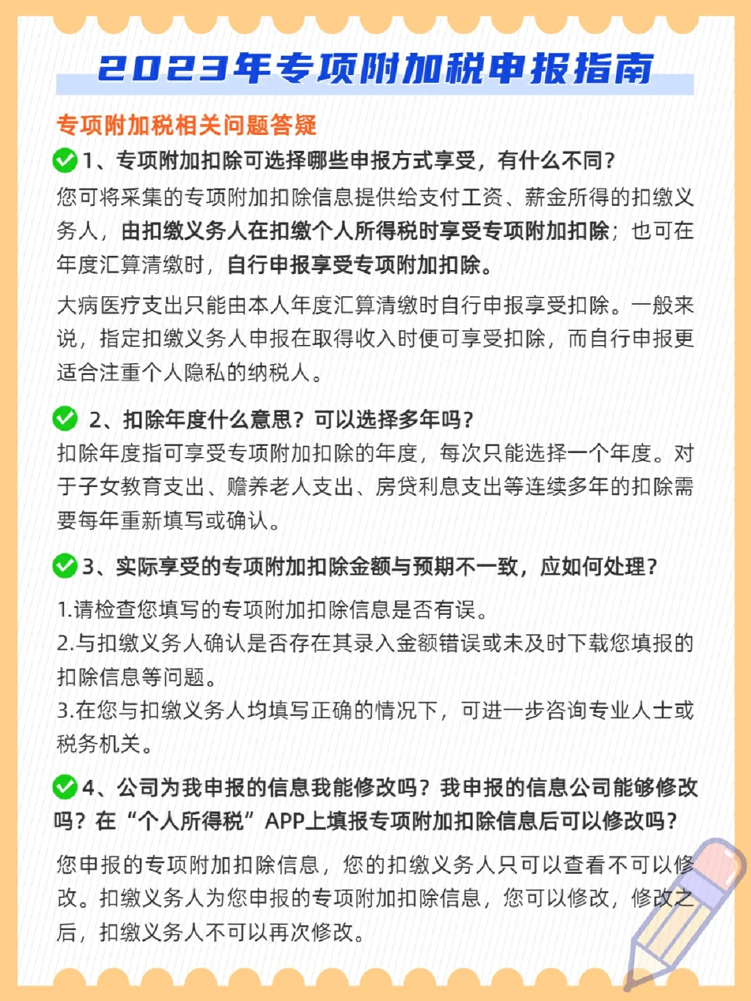 [赞R]还有其他几种申报情形和常见的专项附加税相关问题,小豆也给大家整理到图中啦❗看懂没看懂的,都先点赞+收藏码住🌟想要明年多拿点工资,赶紧跟着操作✅