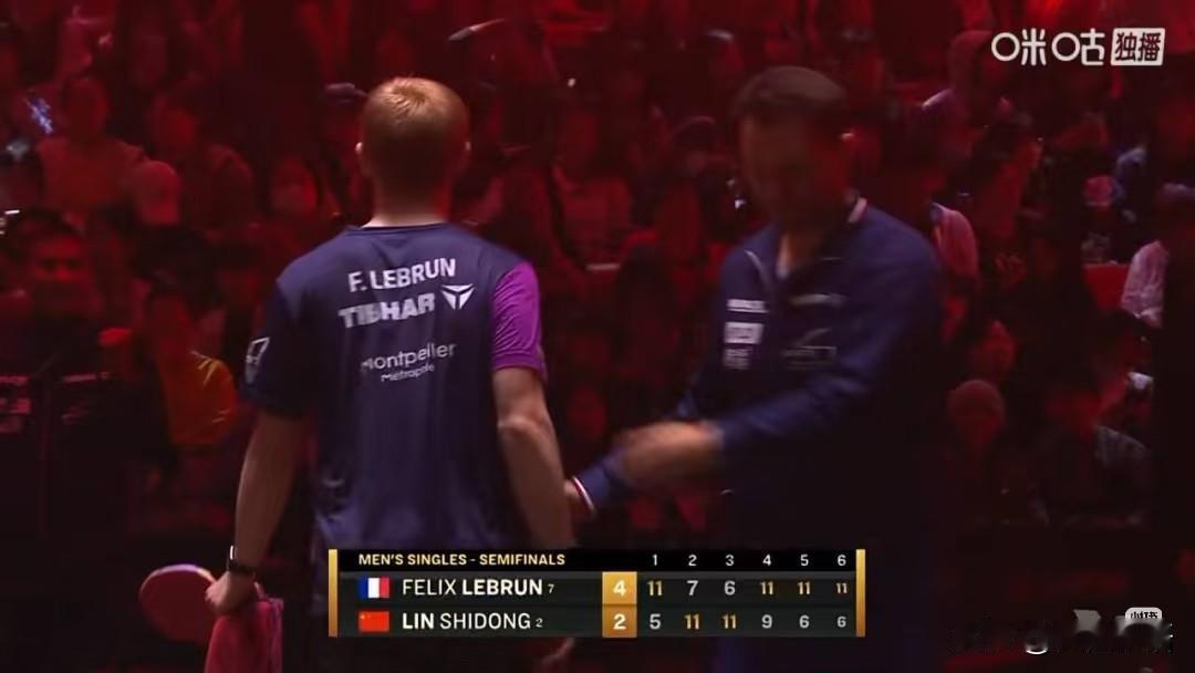 王皓晚上还要继续上班了。 在刚刚的男单半决赛中,菲利克斯•勒布伦是4-2战胜林诗栋,晋级中国大满贯男单决赛,这是勒布伦取得对林诗栋的第三胜,两个人一共有过4次交手,林诗栋只赢过一次,林诗栋下来好好复盘,争取下次赢回来。 确实刚刚看了比赛,小布在打比赛的时候变化很多,确实涨球了,相比之前也更稳重了。下一场男单半决赛是王楚钦对阵向鹏,他们两个之间的胜者将会和小布争夺本站赛事的冠军。 这次比赛,王楚钦是身兼三项,目前已经拿到了混双和男双的冠军,接下来的男单半决赛是对内的比赛,场外没有教练,两个人对彼此也很熟悉,都加油吧。反正王皓每次比赛,都得上班到最后,女队今晚决赛还是对内的比赛,教练们可以在观众席轻松看比赛,不管谁赢冠军都是中国队的。