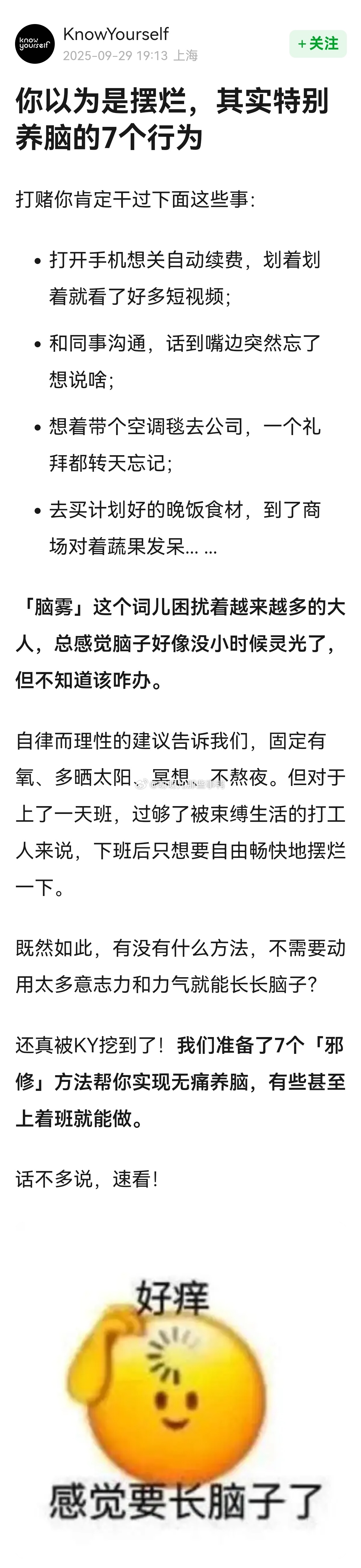 搬→“你以为是摆烂,其实特别养脑的7个行为”[赢牛奶][赢牛奶]