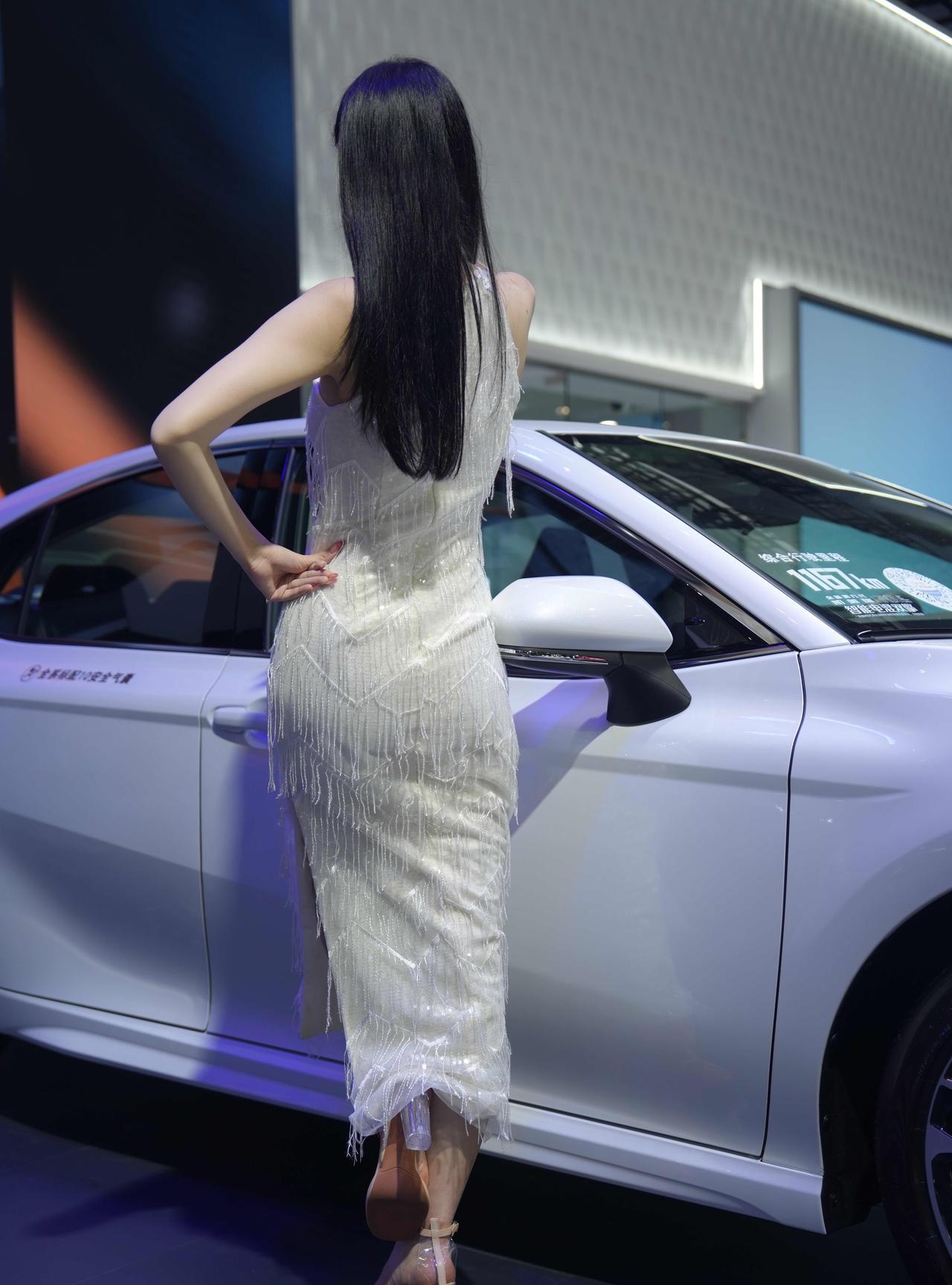 优雅车模与时尚白车的完美搭配,尽显现代都市女性的魅力。