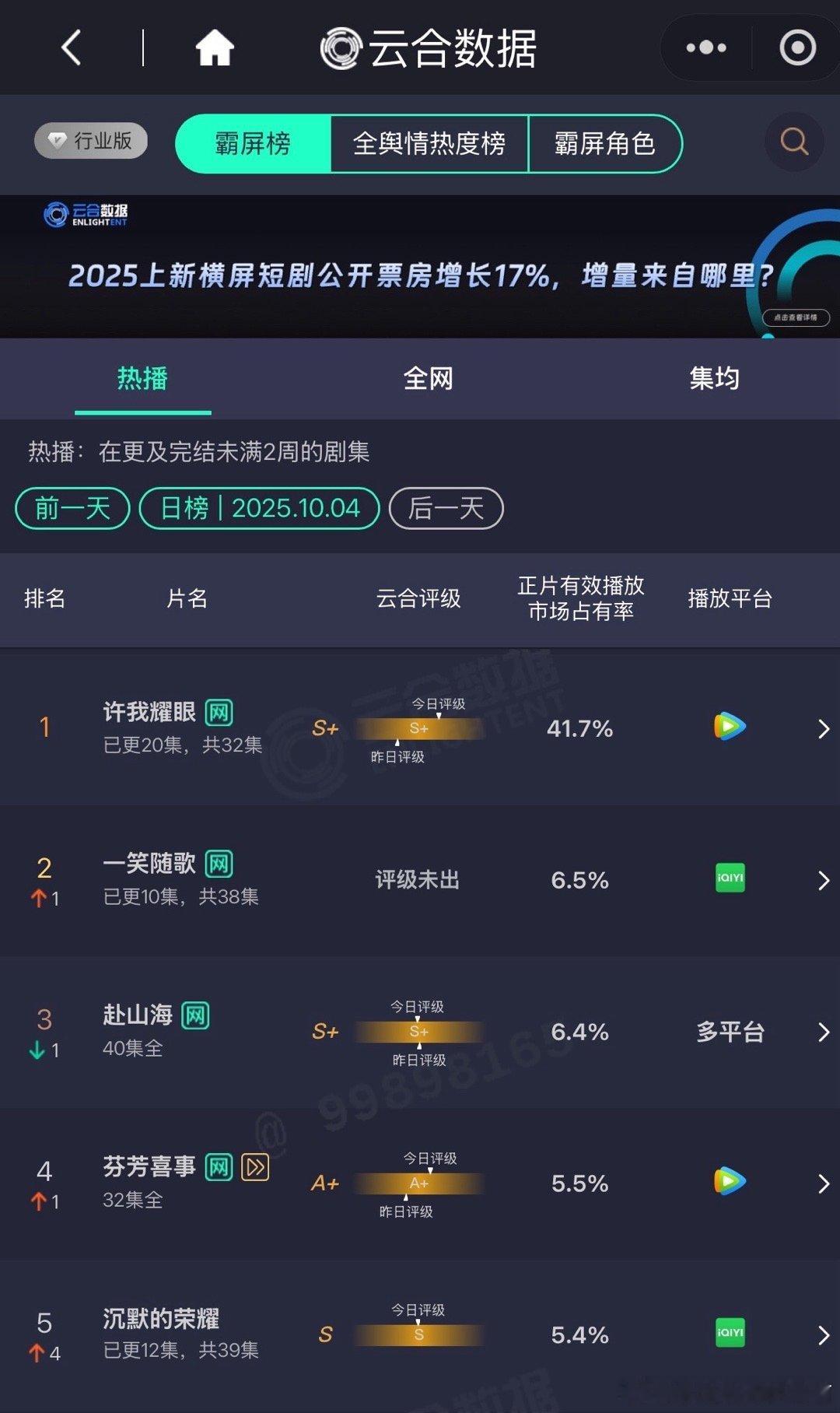 许我耀眼成为第六部云合占比超40%的剧许我耀眼云合
