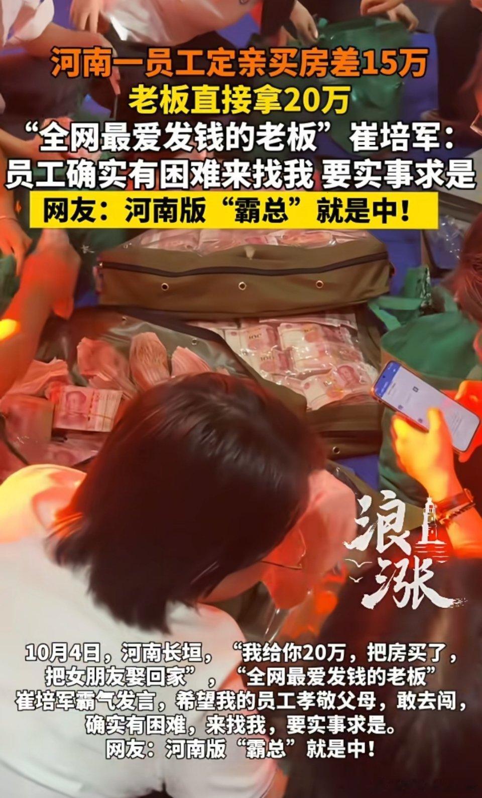🔻河南一员工定亲差15万,老板直接拿20万。