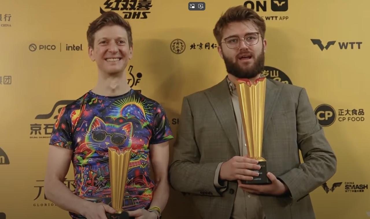 王楚钦打外战太猛了,一扫今天下午的颓废, 第一局 6:1开局 小布气的跳脚了。 小布一旦着急, 就不会打球了。 大头有些松懈, 不过最后大头抓住机会 11:7拿下 局间还播放了主持人大战, 亚当被人家虐了,哈哈