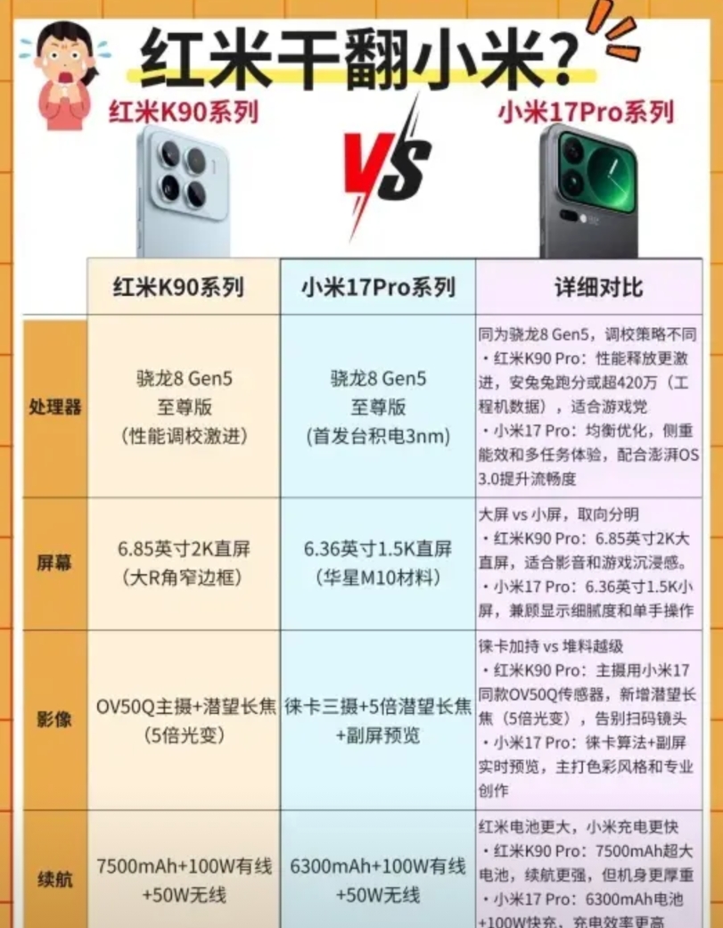 红米干翻小米?!红米k90系列VS小米17Pro系列