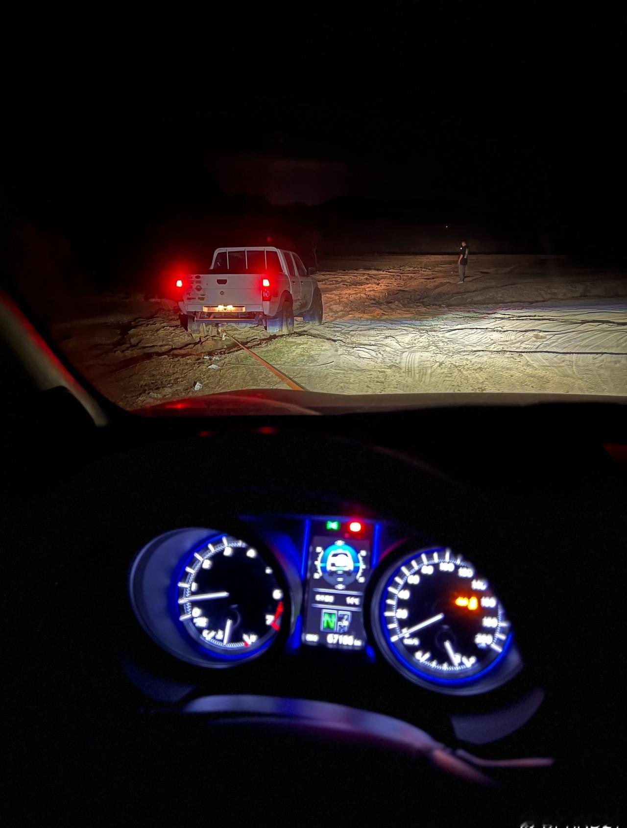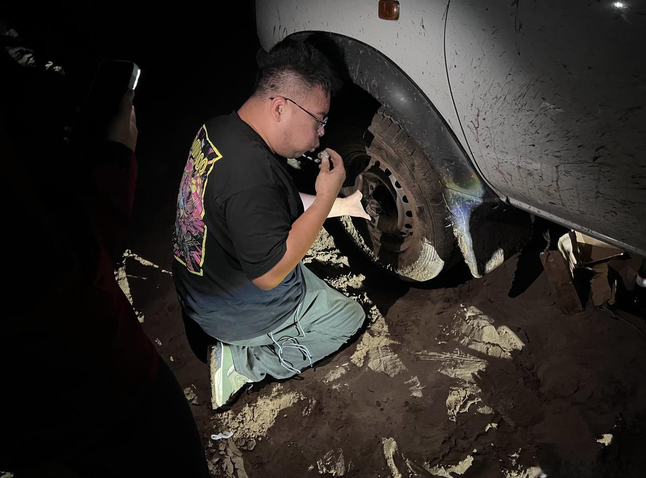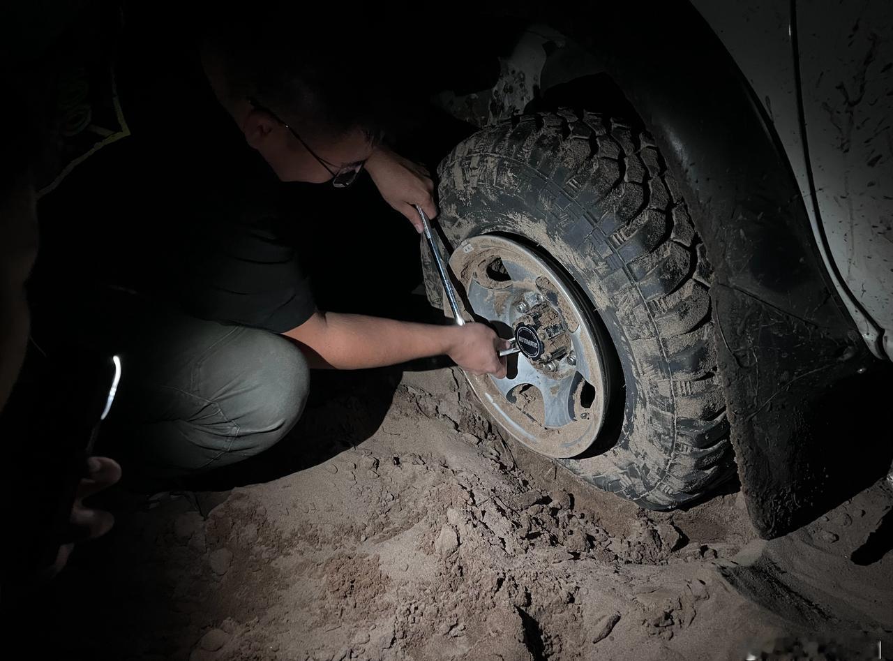在翁牛特挖沙子,在多伦换轮子,主打一个陪伴。 前天和Kevin俩车玩儿完沙子后天色已晚,找回去的路线费了些时间,车辙很多,泥潭/沙子/大水坑也很多。 正当我们歪打正着走上正确路线时,丫小皮卡脱圈了! (这事儿我多少也有责任。当时为走沙子轮胎都放了气,一个沙窝的死坡我没上去,觉得姿态不对我就赶紧倒车,最终连拧带刨的挪到了下坡没陷。他下来找我时打了把死轮,一搓,左前轮就脱了) 好消息:丫有备胎 坏消息:丫千斤顶够不着 好消息:我的千斤顶够得着 几个人就在明亮的月光下照明、顶车、清沙子、拆换轮子,总算搞定了,小皮卡穿着3只野战靴和1只旅游鞋。 结果往前不久就是个颇具迷惑性的泥坡(图8,正确路线是看似大深坑的右侧有一处较浅、泥也不太多的地方,而“看上去很正确”的左边全是大深泥巴),所以还拉了他一把。 总的来说还挺开心,仅有的问题是回去晚了,夜市的毛蛋、肉蛋堡都没了,把凯文气的……