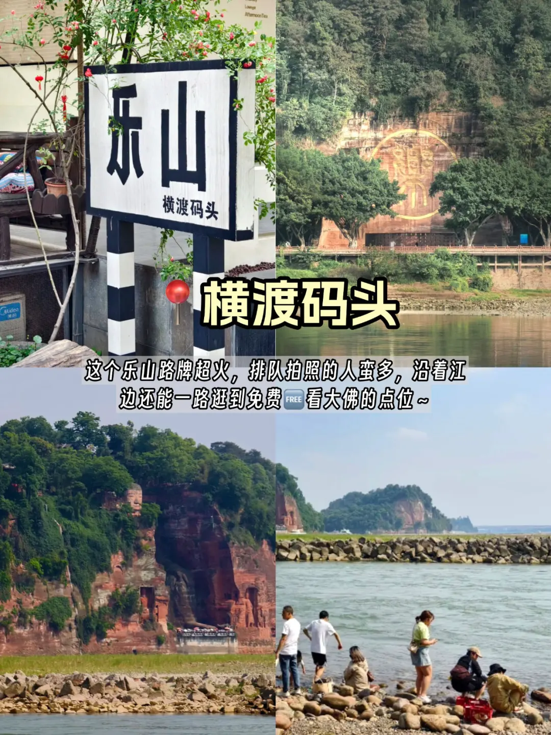 1⃣️乐山横渡码头:乐山路牌拍照蛮好看的,沿着江边溜达🚶可免费打卡乐山大佛!