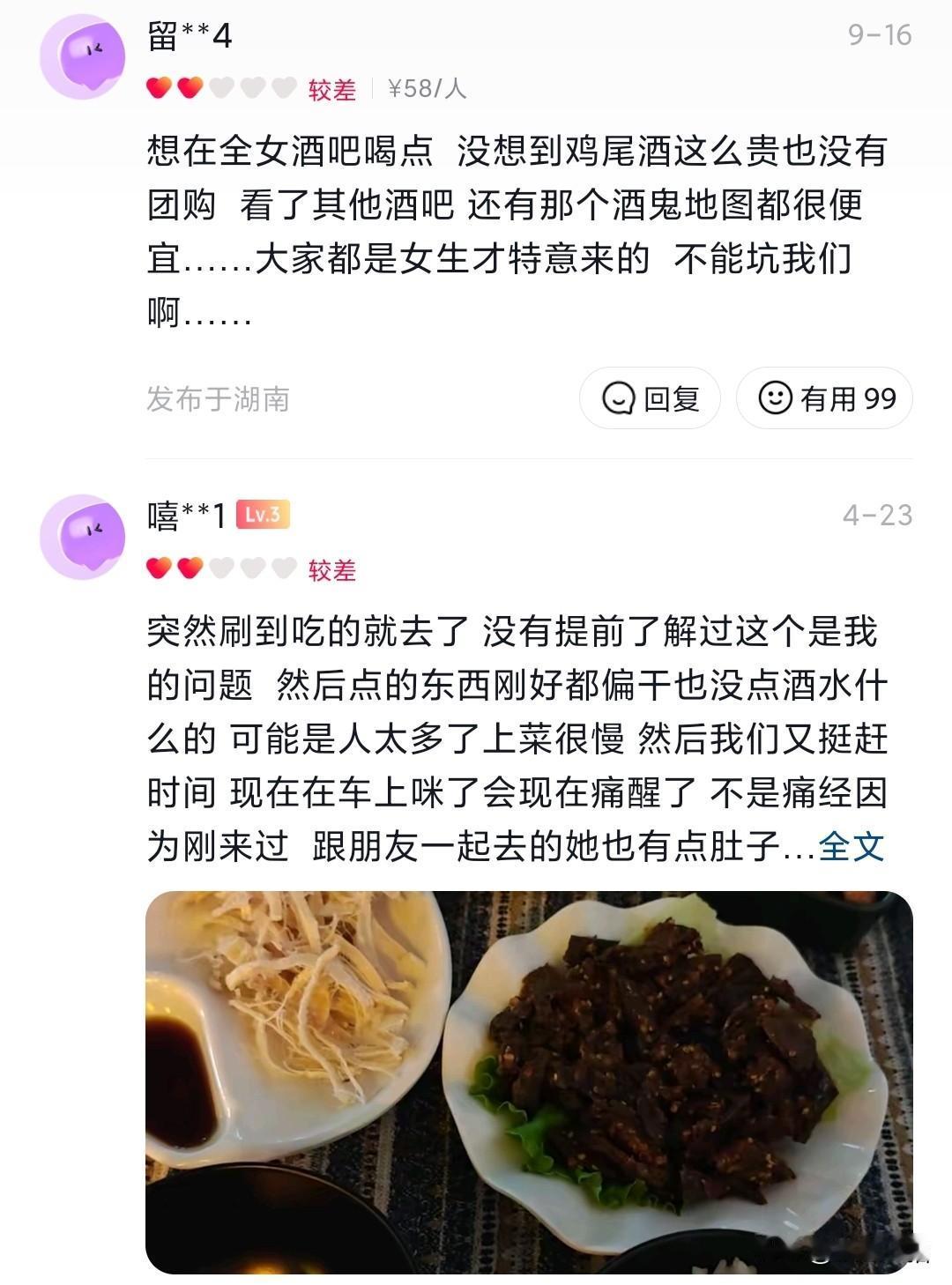 打着为女性好的名义,开全女餐馆,女生在后厨哐哐炒菜,每天要炒十几斤的菜,还必须在下午4点之前做完10个人的员工餐,但是做不完,根本做不完,想走不给她结算工资,压榨她人劳动力。 女生是长沙“她的酒馆·女生聚会空间”的后厨员工,对全女的工作氛围非常向往,刚来这里的时候很开心,后面客流量开始激增,后厨只有这个女生和另外一个配菜的。 她还要负责做凉菜、甜品,所有热菜的出餐,餐厅没人,还要一个人洗所有的碗筷,连回家的力气都没有了,工作量增加,工资却没怎么加,身体累出了病,赚的钱都不够医院花。 兢兢业业的为酒馆做炒菜,却一毛钱提成都没有,在饭馆工作期间,曾出现过鸡和鸡蛋被老鼠啃过的痕迹。 第一时间给老板反应,老板表示把老鼠啃过的扔掉,其他干净的继续用。 三家店光是后厨员工就有5人,同样都是后厨的员工,每天十几斤炒菜,又要做10个人的员工餐,这只能拿底薪,就连酒馆新来的后厨员工,工资都是自己的双倍,前脚刚走,就给后厨增加了菜品提成。 熬不完的夜,干不完的活,做不完的预制菜,超负荷的工作时长,和少的可怜的工资,本以为女生应该会更共情体谅女生,但是错了,除了累的一身病,其他的什么都没得到。 那个被她视作梦想的地方,却成为她的伤害。