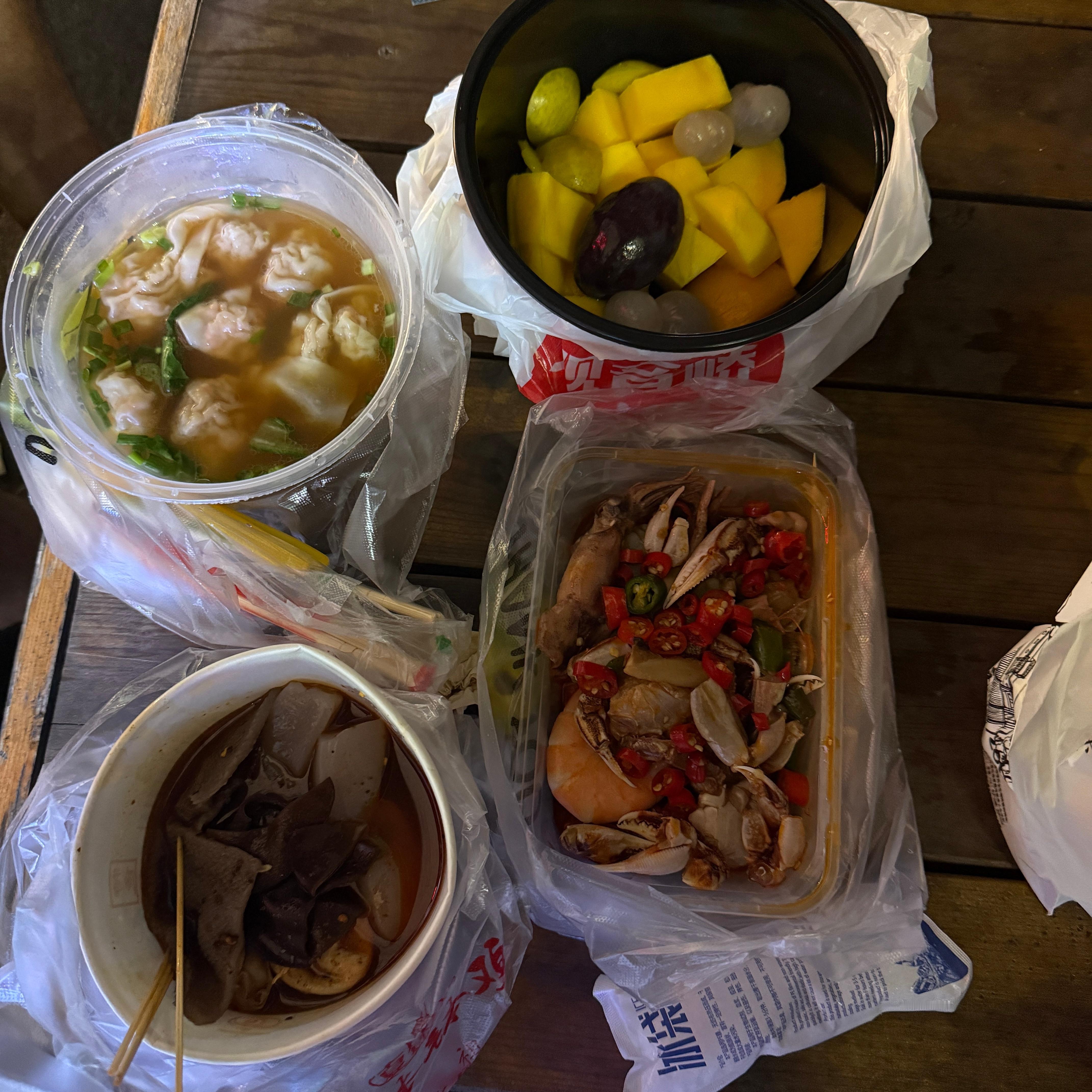在热闹的小吃街,买完之后静静的坐在路边吹着晚风,简直不要太惬意😌