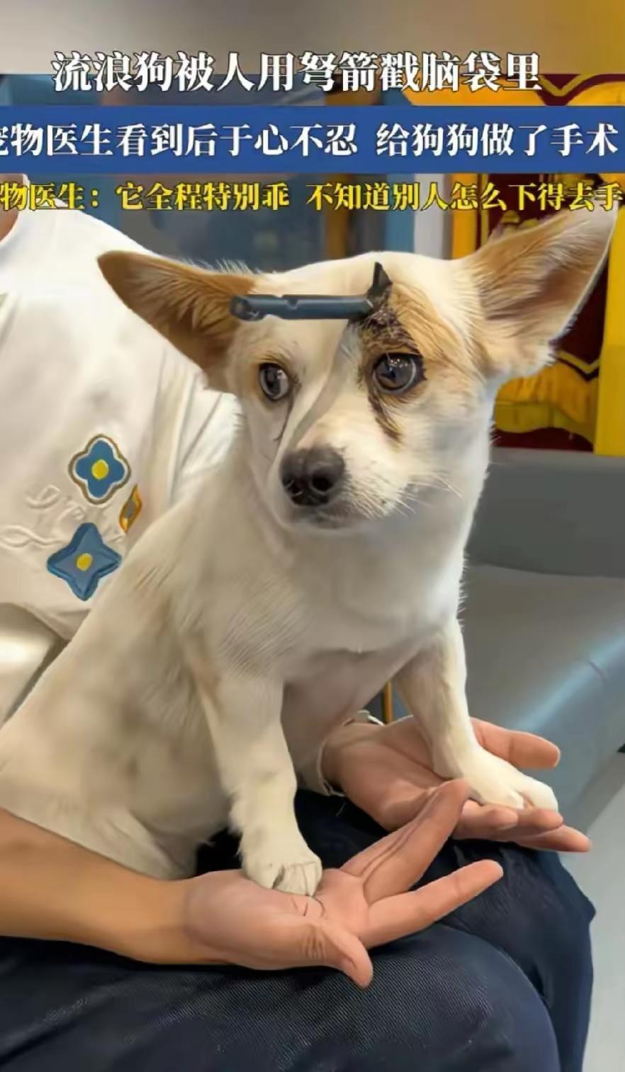 流浪狗头上插着木棍,一路安静地往医院赶,汪医生为它做了手术。在马路上的木棍插透了狗狗的头,木棍头部是平的,像是被人用武器射穿的,为什么要伤害它?开车路过的好心人发现了这只流浪狗,赶紧用绳子把它拖到车上,往宠物医院赶。 一路上这只狗狗表现得特别安静,似乎知道要被救了。汪医生说,当时木棍穿透狗狗的头部,伤口出血很多,幸好没有伤到脑部,手术能把木棍拔出来。经过一番抢救,这只狗狗成功手术了,但头部有个大洞,缝合后要恢复一段时间。汪医生给它取名叫白雪。看着白雪可怜的样子,不知道施暴者是不是心里会感到一丝愧疚?不管什么原因,不爱也别伤害啊!