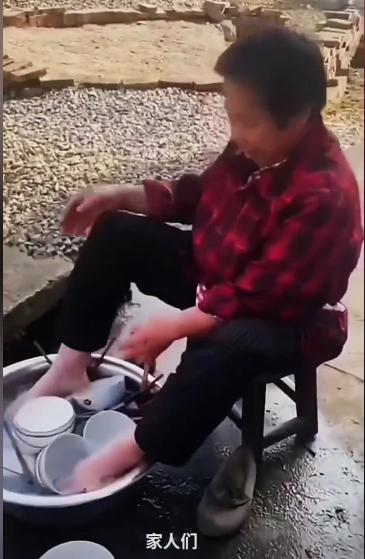 善恶终有报,苍天饶过谁 老太太故意恶心人,她在刷碗时,把两只脚伸进了刷碗的水盆