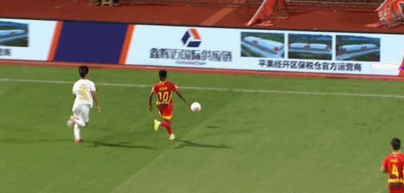 中甲25轮,重庆铜梁龙vs广西平果,身穿平果10号战服的外援阿萨莫阿在与对手拼抢