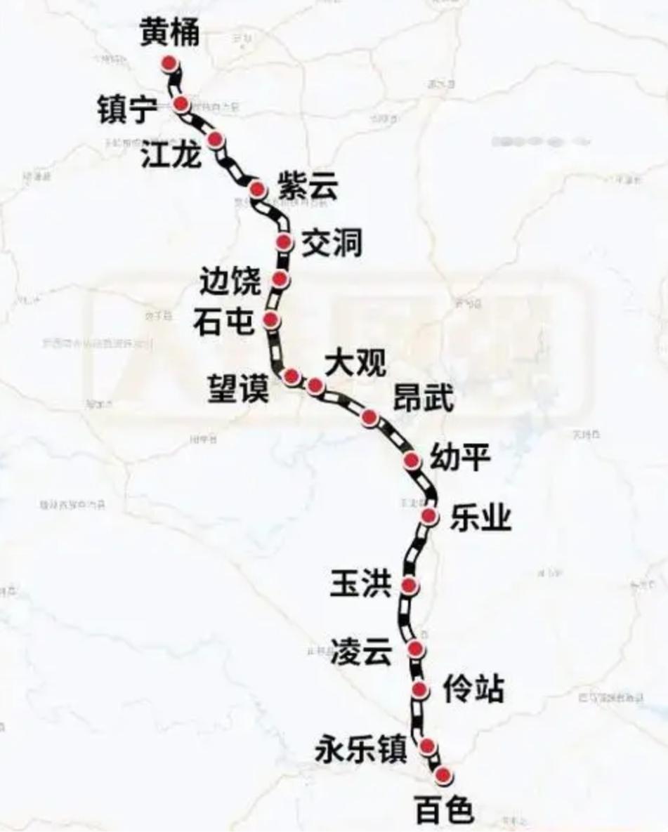 黄桶至百色铁路全面开工,2028年建成通车 近期,服务革命老区凌云、乐业发展的关键交通工程——黄桶至百色铁路全线正式启动建设,标志着这条承载着区域发展希望的钢铁动脉步入实质性施工阶段。项目计划于2028年建成通车。 黄百铁路正线长度约300公里,设计时速160公里,是一条以货运为主、兼顾客运的国铁Ⅰ级单线电气化铁路。线路起自贵州安顺黄桶站,终至广西百色站,沿途穿越复杂喀斯特地貌,桥隧比高达惊人的88.5%,施工难度极大。 **这条铁路的建成意义深远:** * **老区振兴新引擎:** 作为国家《“十四五”现代综合交通运输体系发展规划》中的重点项目,它将彻底改变凌云、乐业等革命老区长期无铁路覆盖的历史,打通区域对外运输大通道,为巩固拓展脱贫攻坚成果、全面推进乡村振兴注入强劲动能。 * **经济腾飞新通道:** 线路将有效串联起西南内陆与北部湾出海口,显著提升区域综合运输效率。预计建成后,沿线特色农产品外运成本将大幅降低,乐业大石围天坑群、凌云茶山等旅游资源开发将迎来前所未有的机遇,人员往来时间可缩短50%以上。 * **民生出行新选择:** 客运功能的开通,将为凌云、乐业等县民众提供便捷、经济的铁路出行方式,结束当地居民长途出行依赖公路的历史,大幅提升生活便利性。 施工方表示,将克服地质复杂、生态敏感等挑战,以高标准、高质量推进工程建设,确保这条寄托着老区人民期盼的“发展路”“幸福路”如期建成,为桂黔革命老区高质量发展提供坚实的交通支撑。
