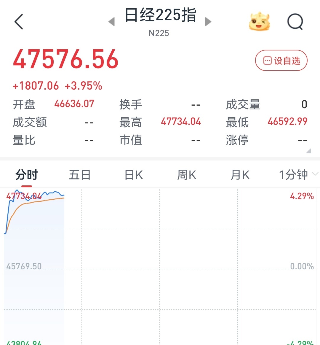 高市早苗或成日本首个女首相周一开盘,日经指数大涨近4%。