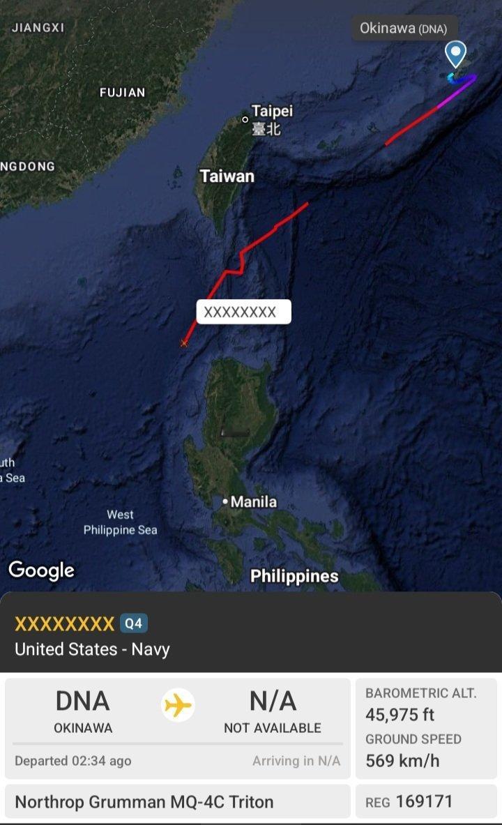烽火问鼎计划外网图片:今天一架美军MQ-4C无人机从巴士海峡进入南海,飞往黄岩岛方向。